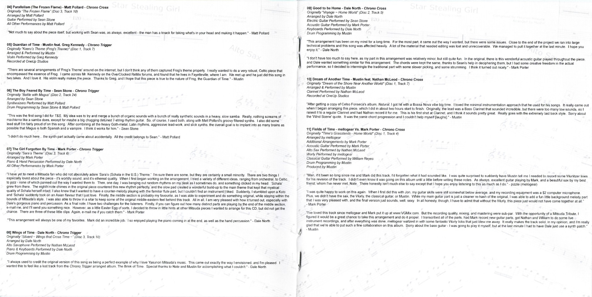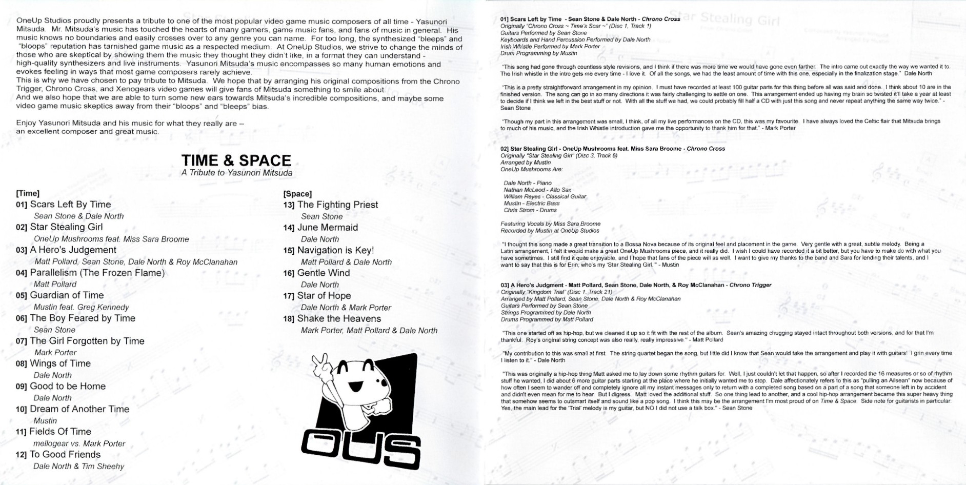 Second release of Time & Space. The first release (same catalogue number, "Time & Space - A Tribute to Yasunori Mitsuda (Green)") had weaker production and a different tracklisting.