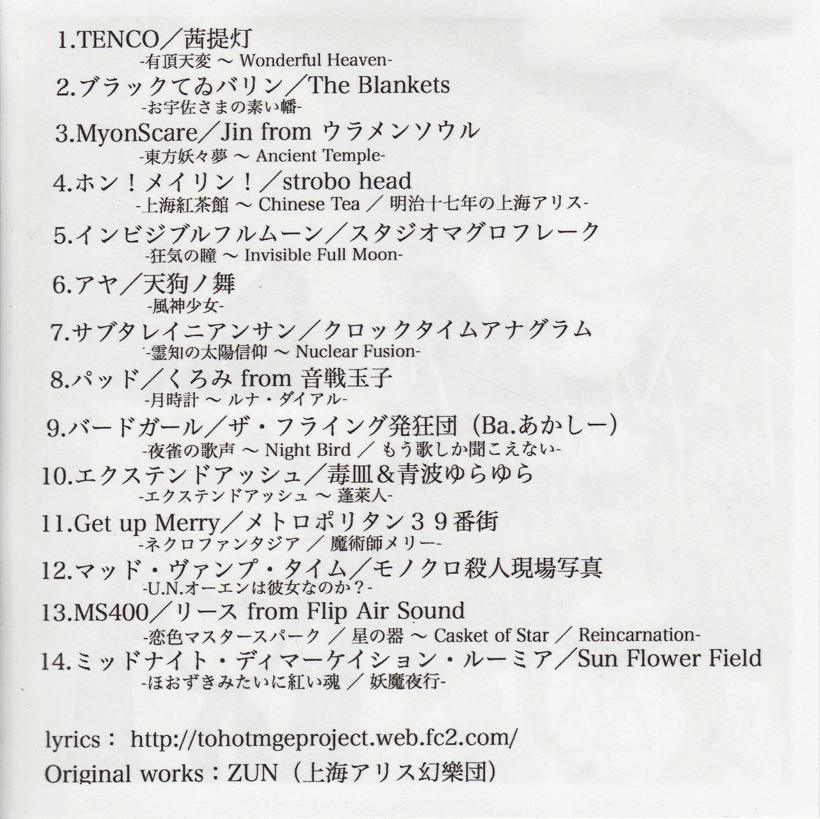 Vocals: (mostly credited by circle name)