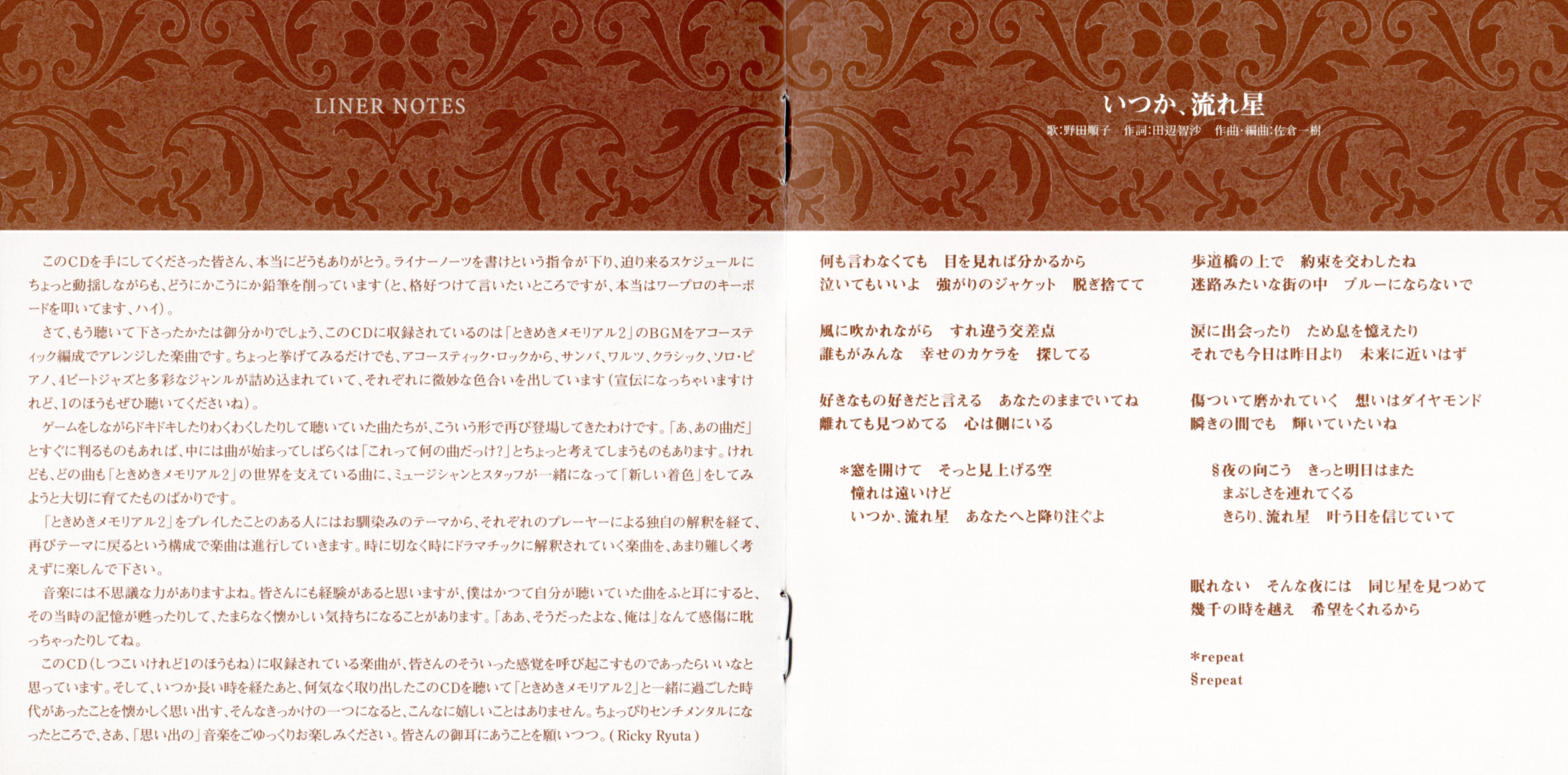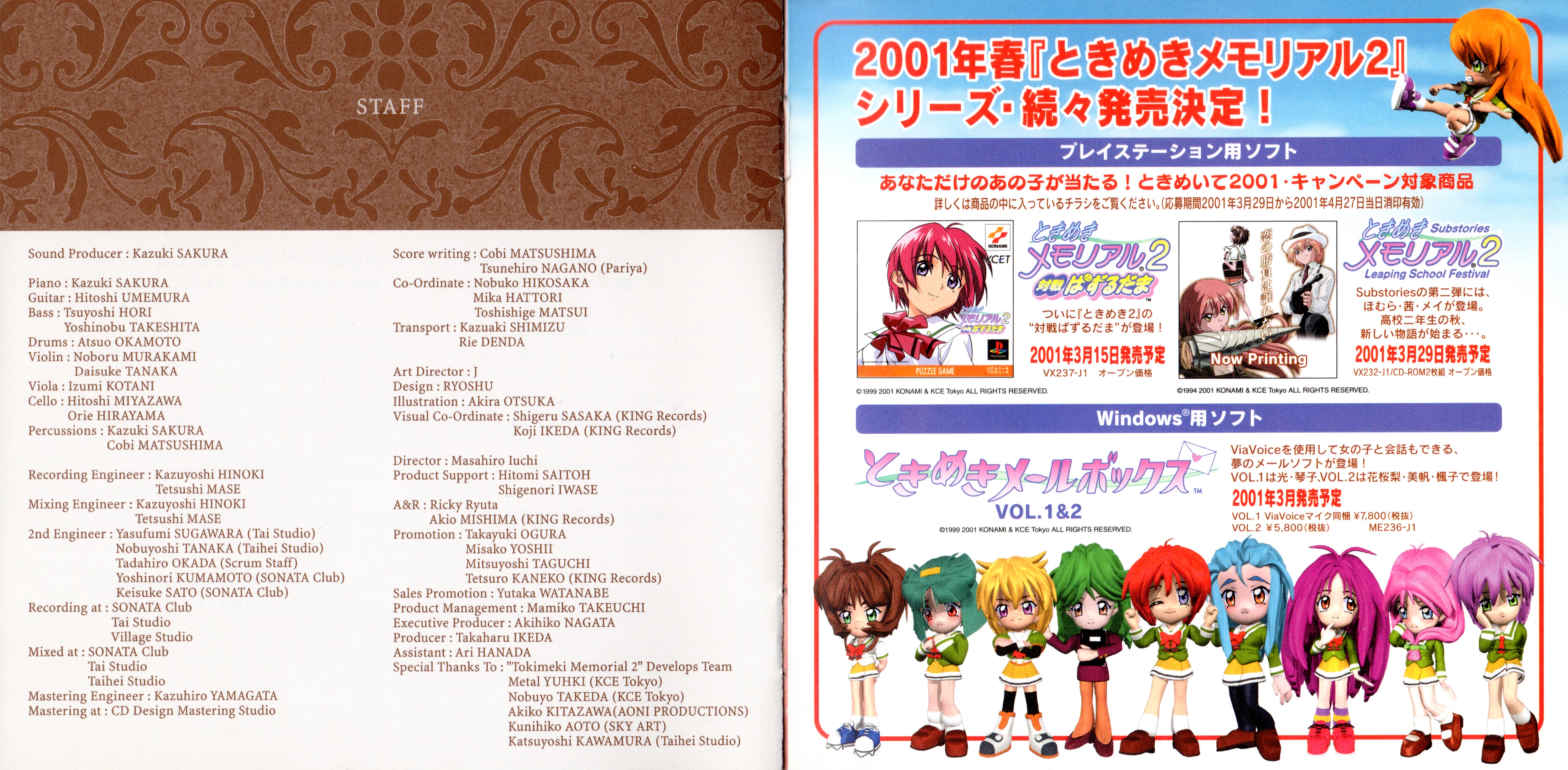 Special Thanks To: "Tokimeki Memorial 2" Develops Team, Metal YUHKI (KCE Tokyo), Nobuyo TAKEDA (KCE Tokyo), Akiko KITAZAWA (AONI PRODUCTIONS), Kunihiko AOTO (SKY ART), Katsuyoshi KAWAMURA (Taihei Studio)