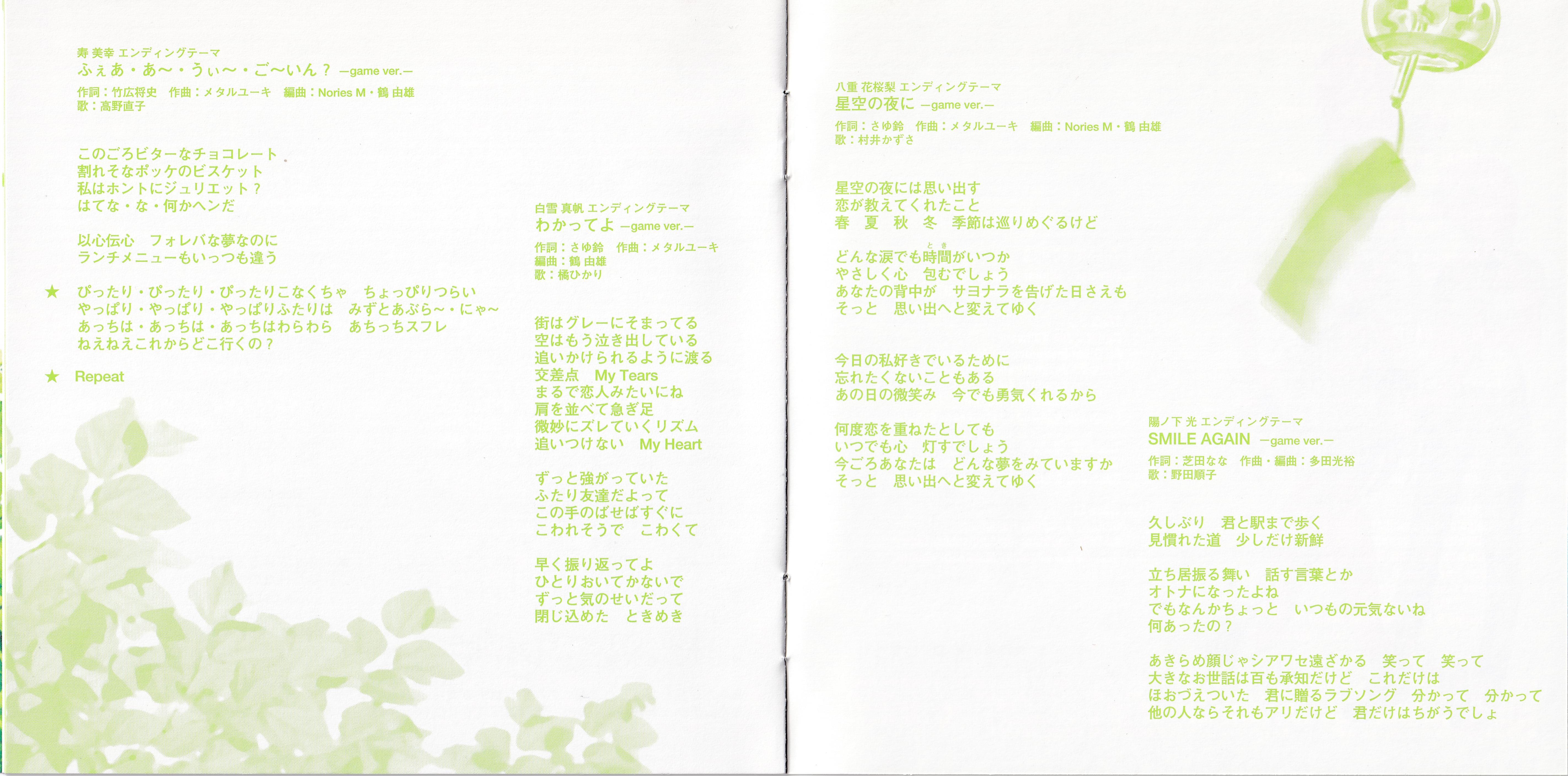 M20 - Lyrics: Sayurin / Music: Metal Yuhki / Arrange: Nories M, Yoshio Tsuru / Vocal: