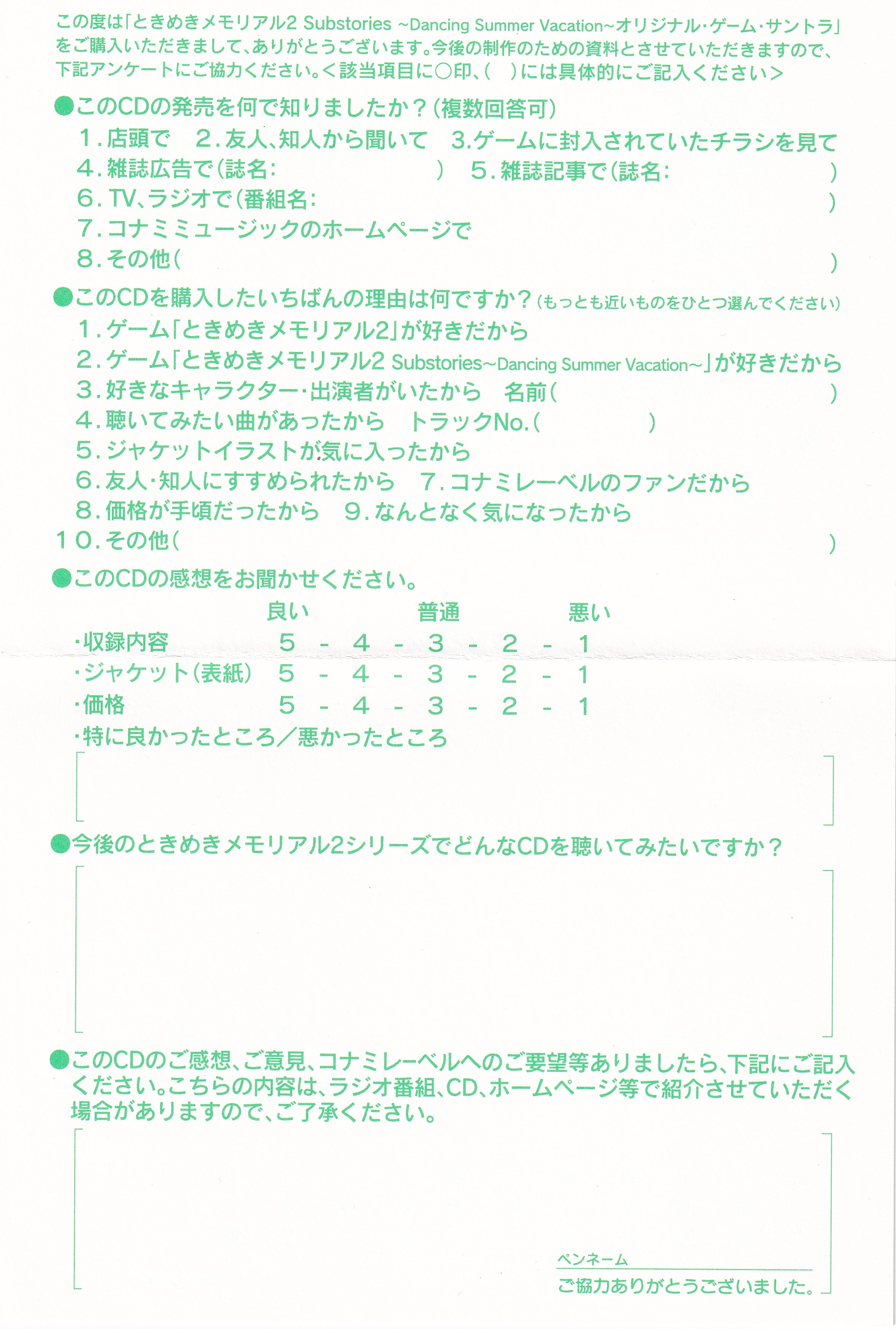ときめきメモリアル2 サブストーリーズ ~ダンシングサマーバケーション~ オリジナル・ゲーム・サントラ