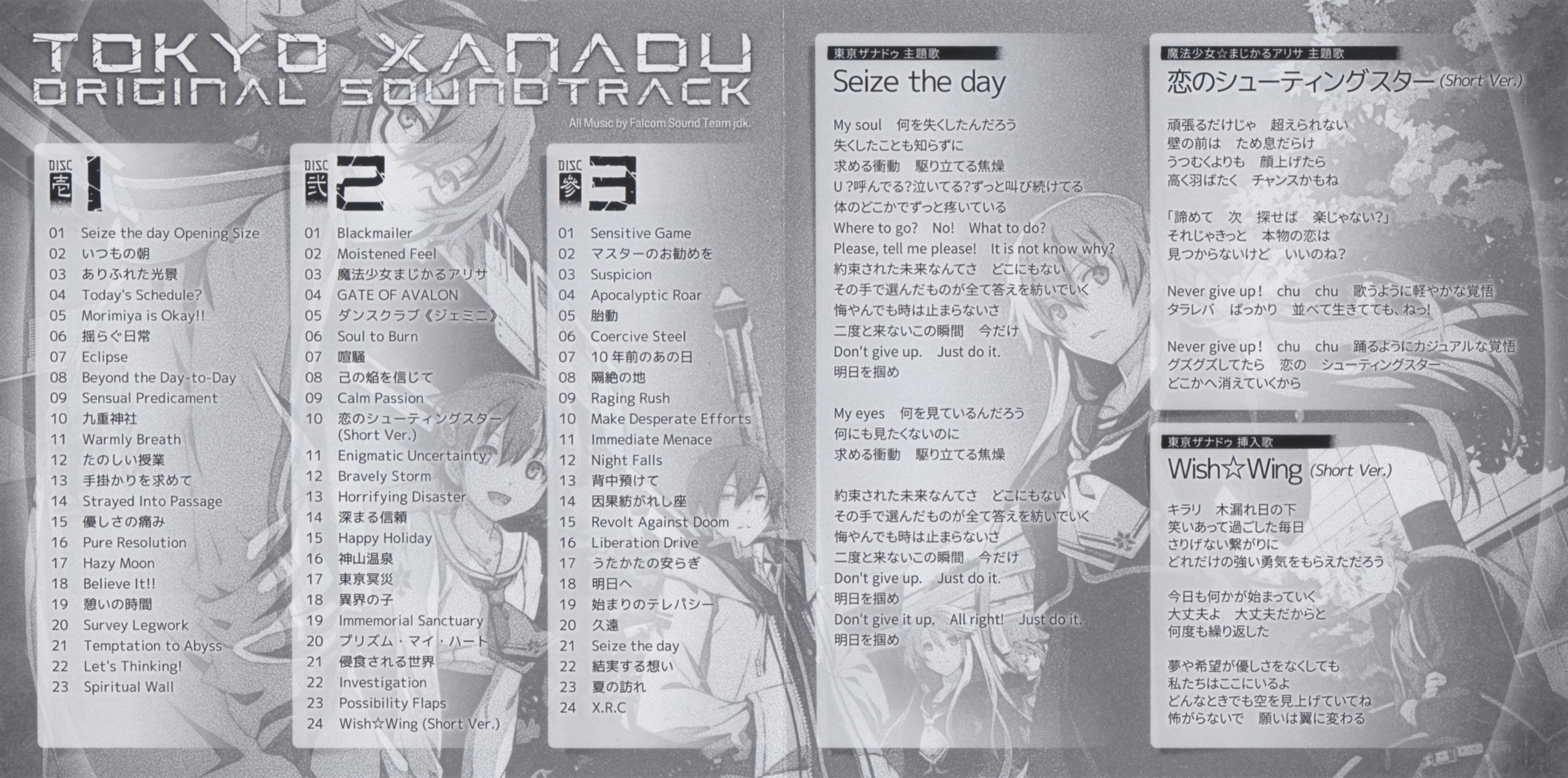 All music by Falcom Sound Team jdk (Hayato Sonoda, Takahiro Unisuga), with outsourced work by Yukihiro Jindo/Mitsuo Singa and uncredited music from Tomokatsu Hagiuda/Ryo Takeshita.