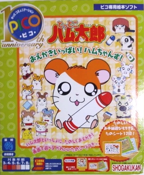 Tottoko Hamutaro: Lots of Drawing with Hamuchanzu (とっとこハム太郎 おえかきいっぱい! ハムちゃんず) is a Hamtaro-themed Sega Pico game released in 2002 by Sega Toys. The game centers around teaching drawing fine motor skills to young audiences, all with the help of the Ham-Hams.
