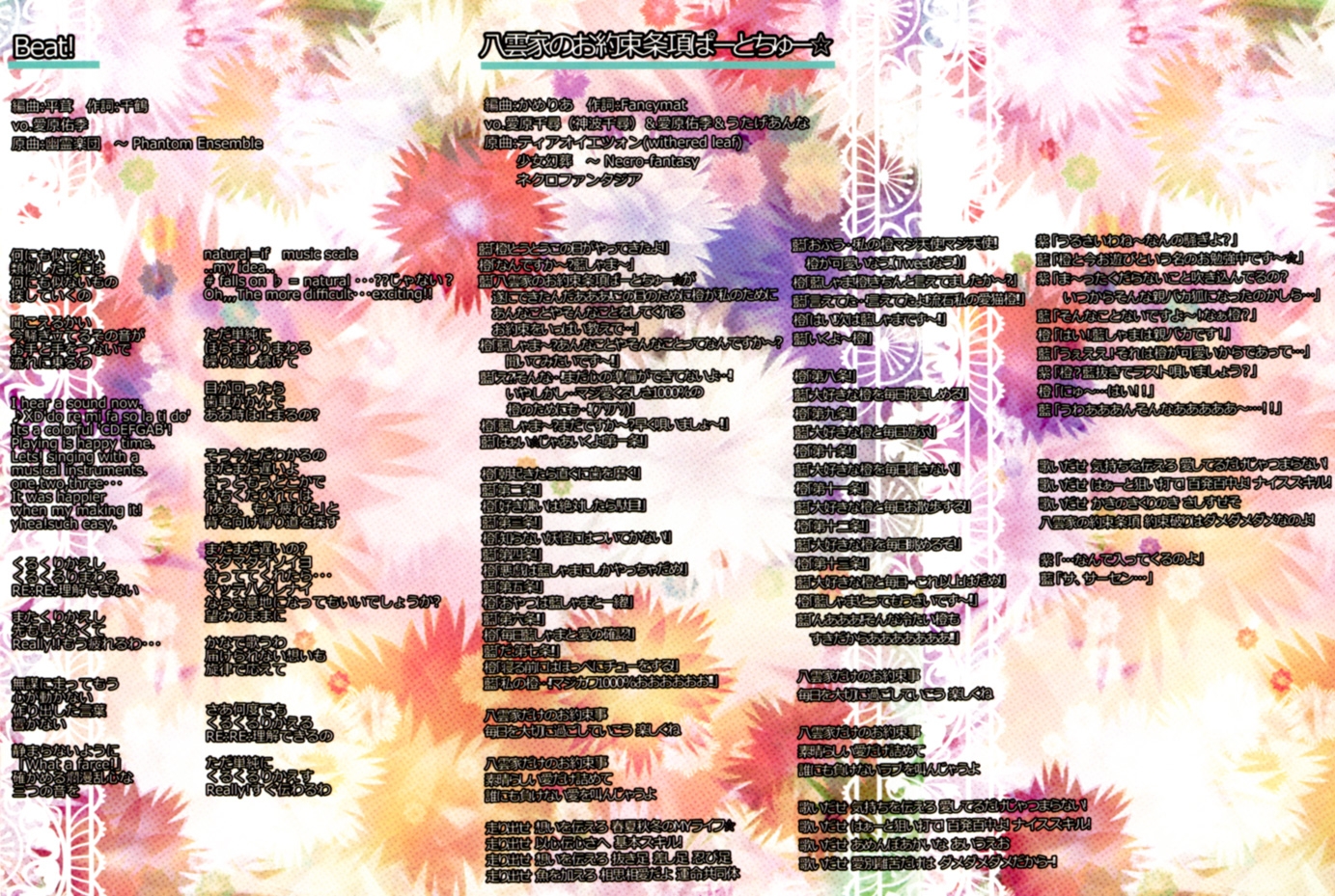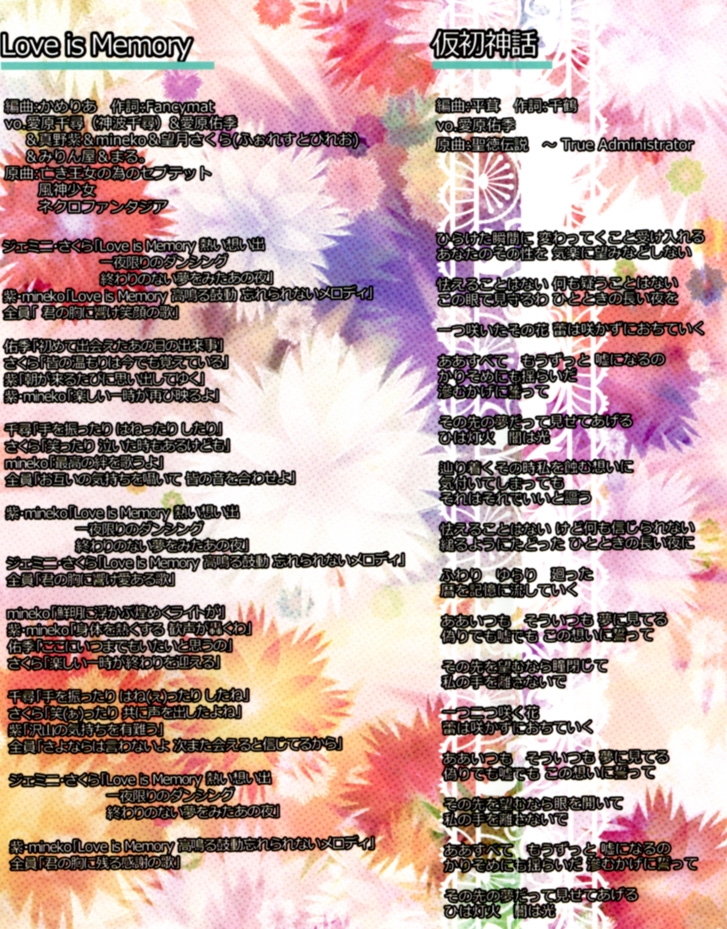 Vocals: Yuuki Aihara, Chihiro Aihara, Yukari Mano, mineko, Sakura Mochizuki (Forestpireo), みりん屋, まる。