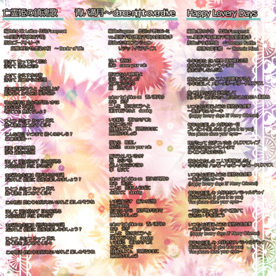 Arrangement: Camellia / Vocals: Chihiro Aihara, Yuuki Aihara, Anna Utage (うたげ あんな) / Lyrics: Fancymat