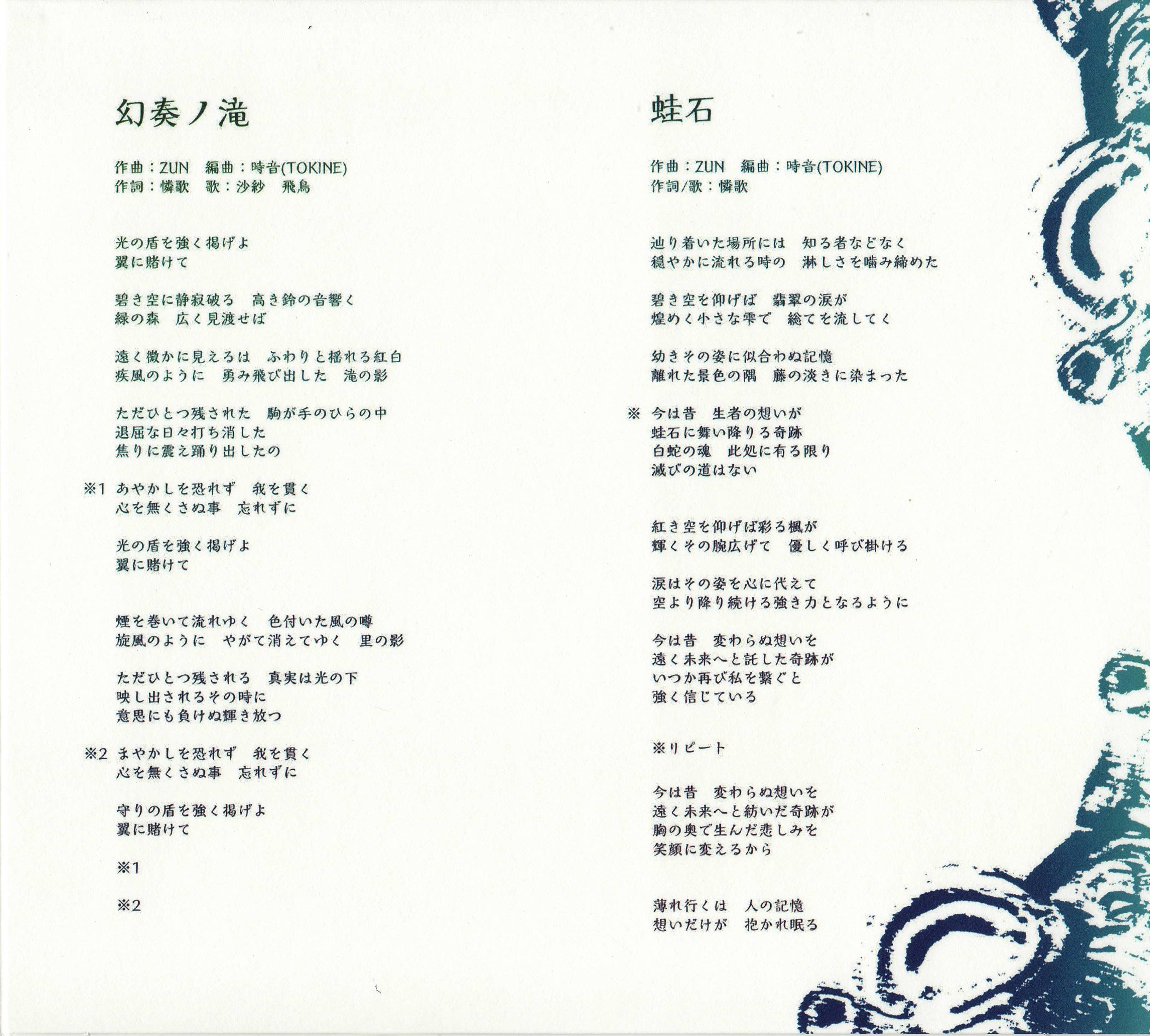 | 13. | 幻奏ノ滝(instrumental) | 5:02 | 10.33 MB | 34.95 MB | get_app | playlist_add |