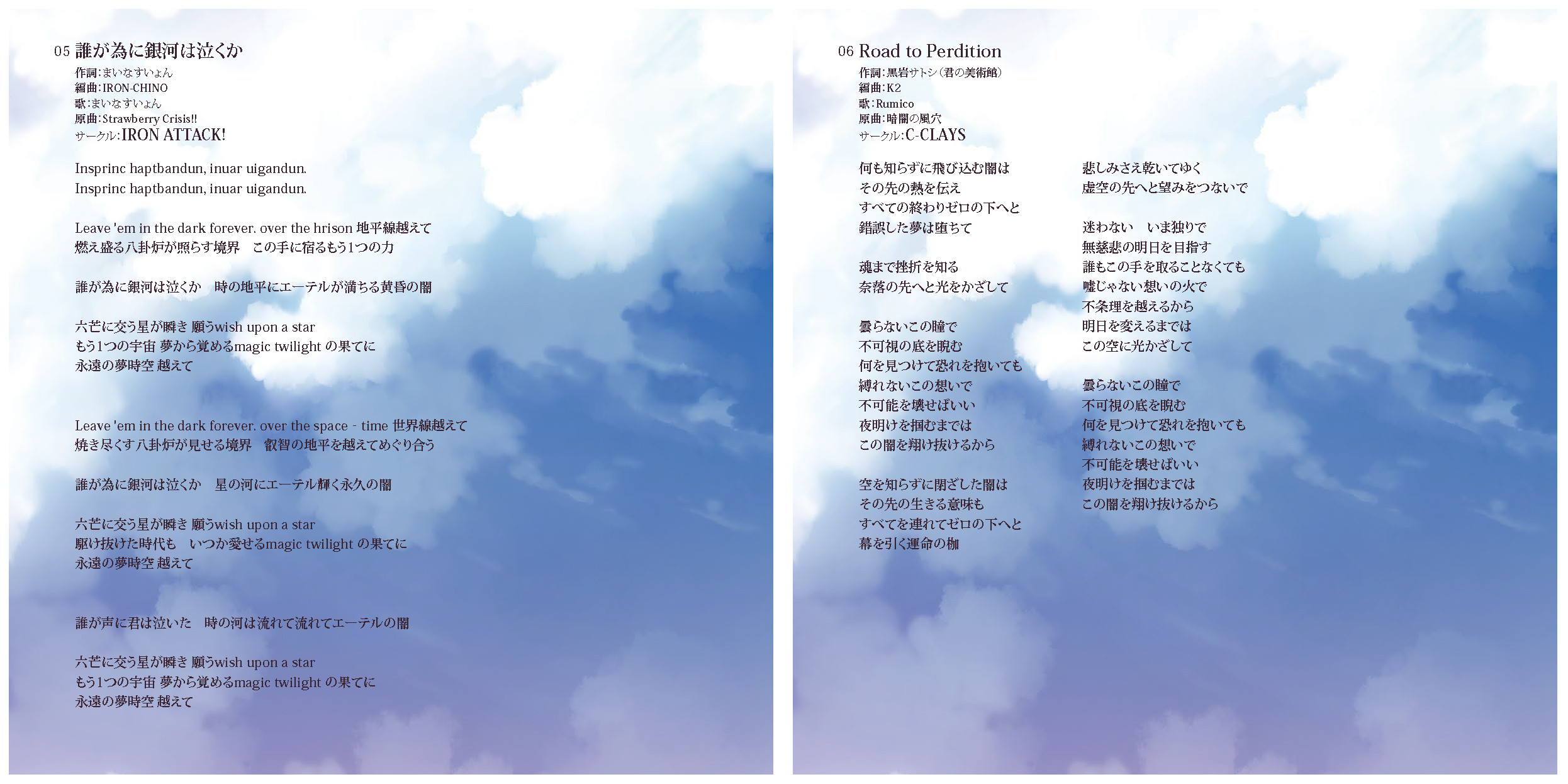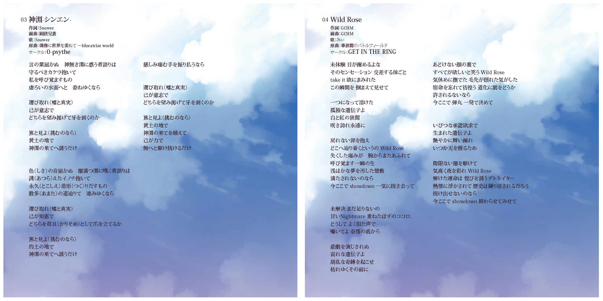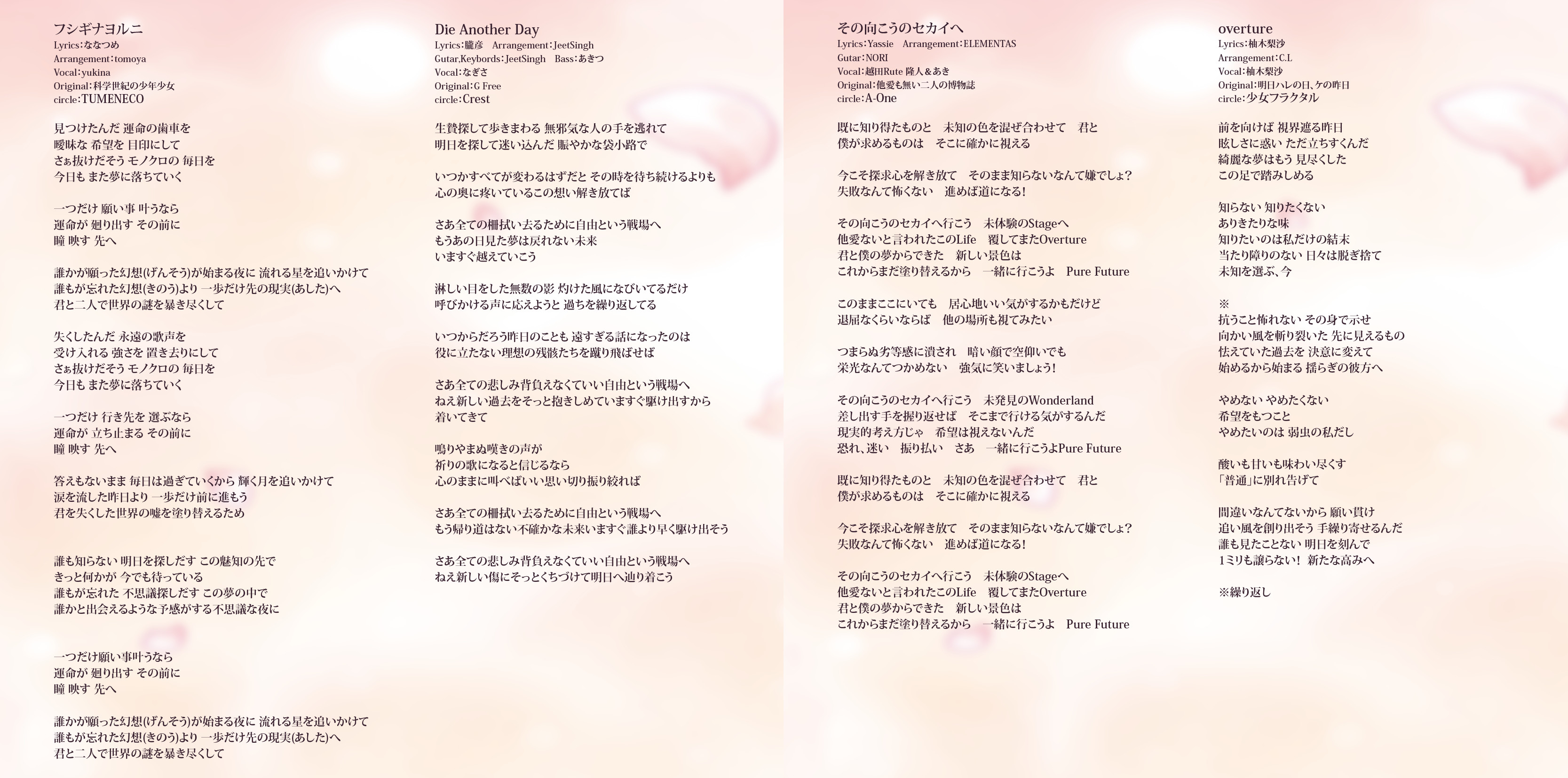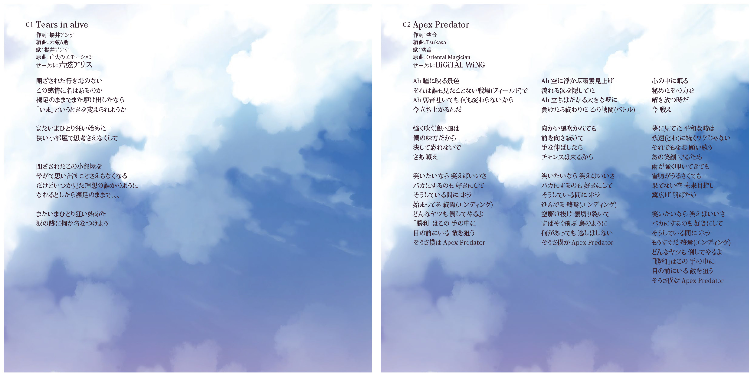 An on-parade of magnificent Touhou arrangements, performed by famous Japanese Doujin Circles such as Rokugen Alice, BUTAOTOME, A-One, C-CLAYS and Yuuhei Satellite to heat up the battles to infinity!