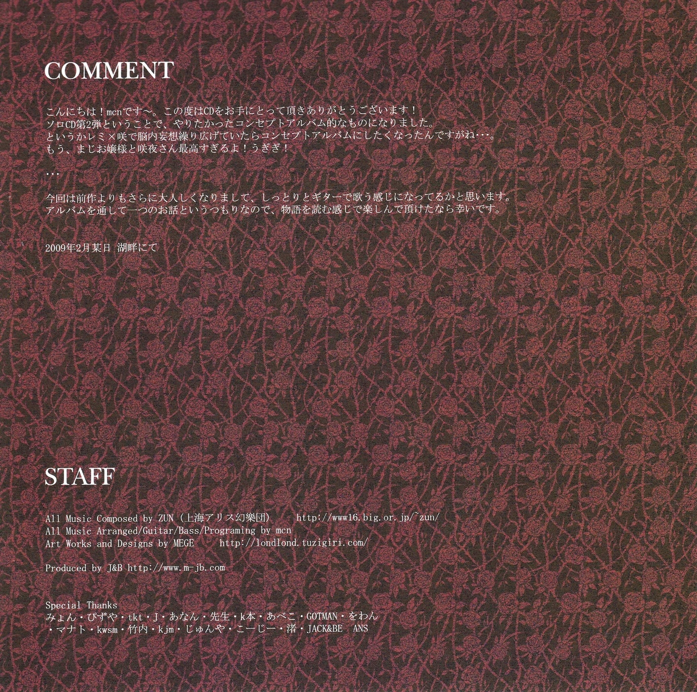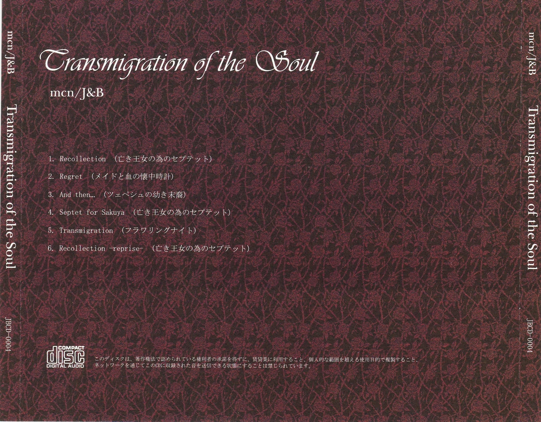 All tracks originally from Touhou Koumakyou except 05 from Touhou Kaeidzuka