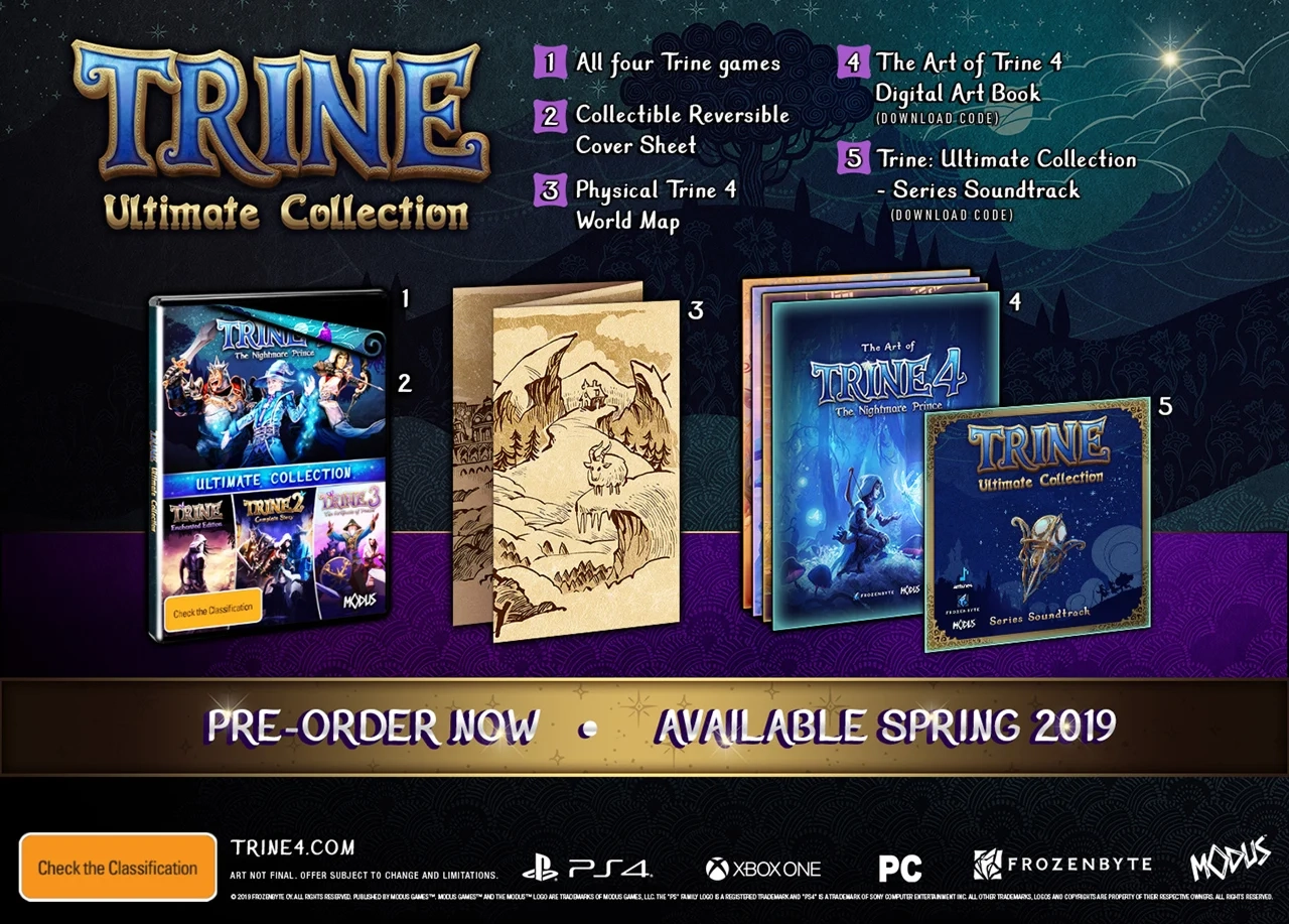 Digital soundtrack available with a download code, included with the game Trine Ultimate Collection, for PC, NSW, Xbox One & PS4.