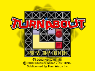 Turnabout is a puzzle game. Each round consists of one or more stationary and non-stationary objects enclosed within a bordered stage. Gameplay involves rotating the stage 90 degrees either clockwise or counterclockwise, causing all the unfixed objects to fall downward due to gravity. The goal is to rotate the stage in order to remove certain elements. These include colored balls, which are dynamic, and colored blocks, which are stationary. When a ball collides with another ball or block of the same color, they both disappear.[1] This repeats until the player makes all colored pieces disappear or cannot make a move, requiring the level to be restarted. There is no time limit.