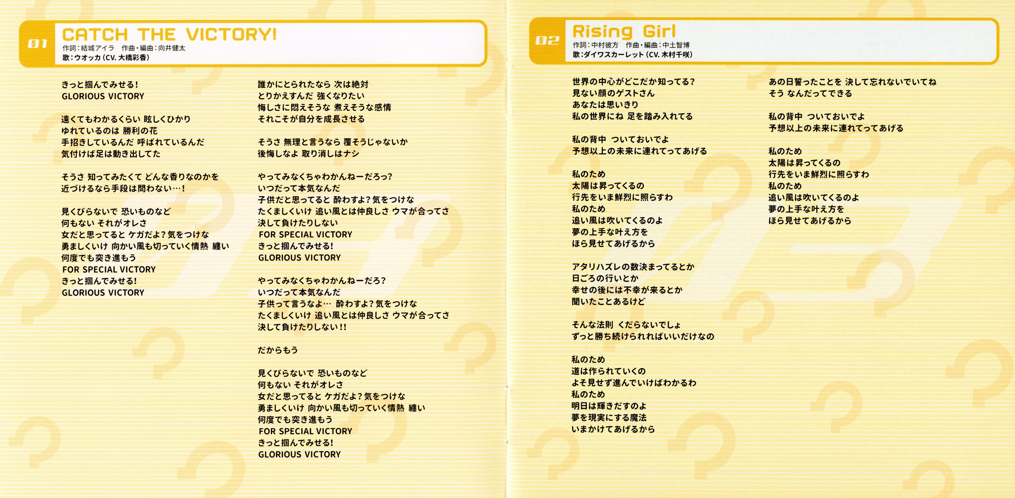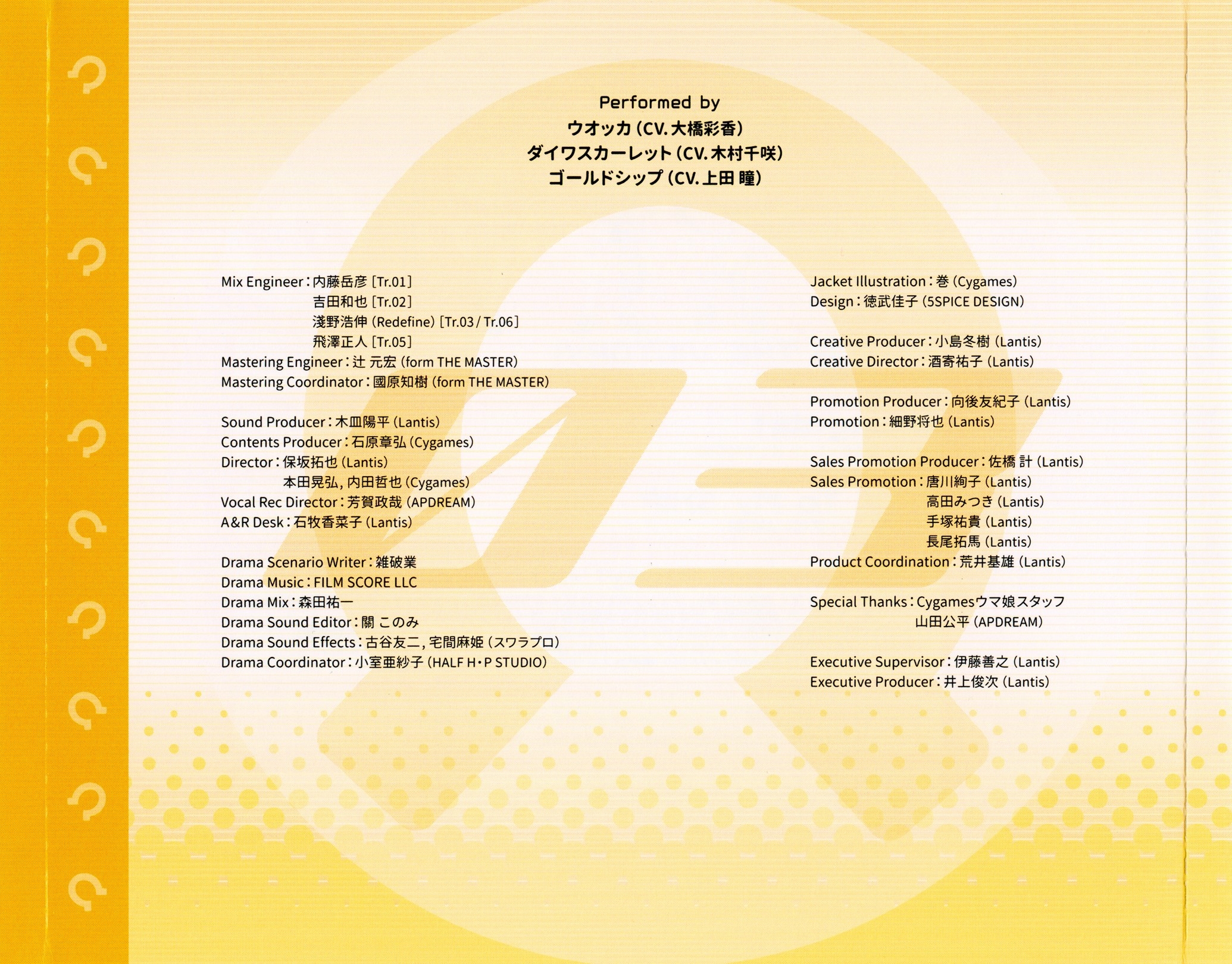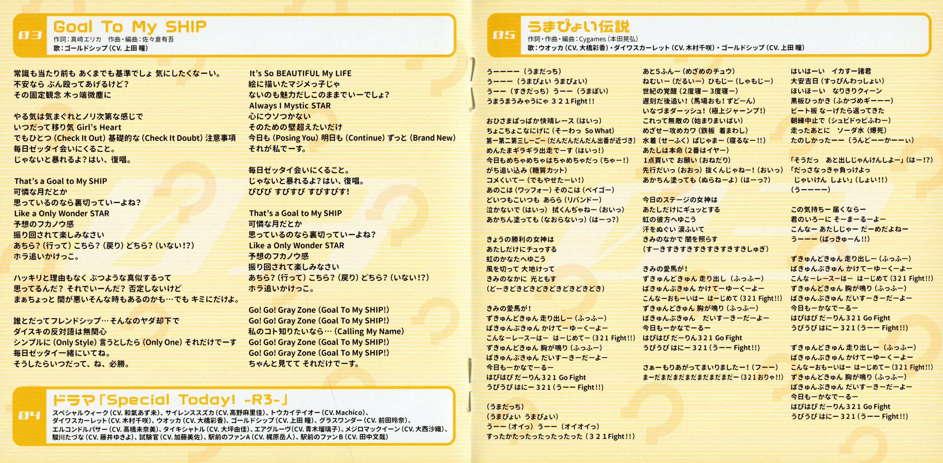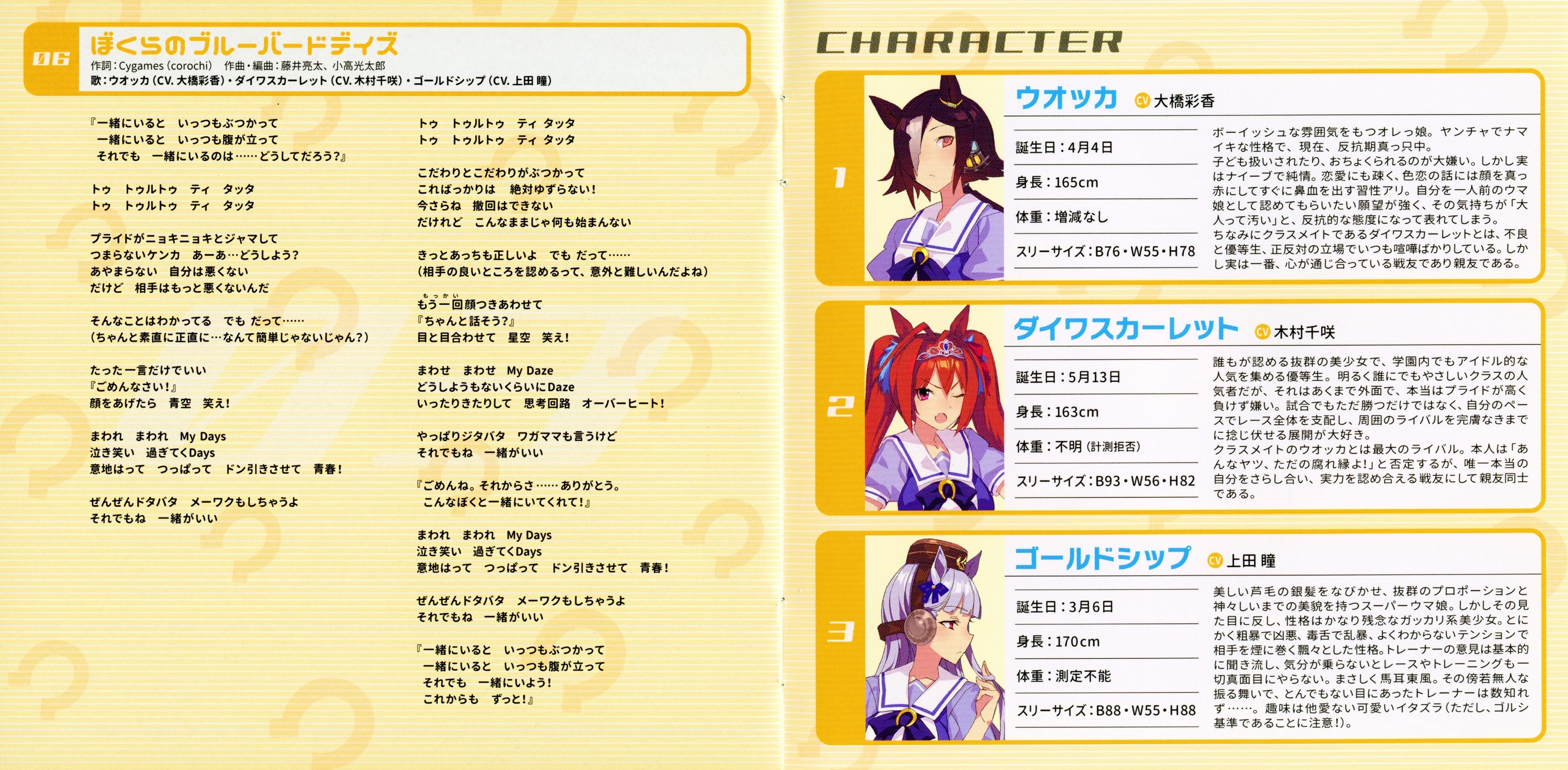Performer: Vodka (CV: Ayaka Ohashi), Daiwa Scarlet (CV: Chisa Kimura), Gold Ship (CV: Hitomi Ueda)