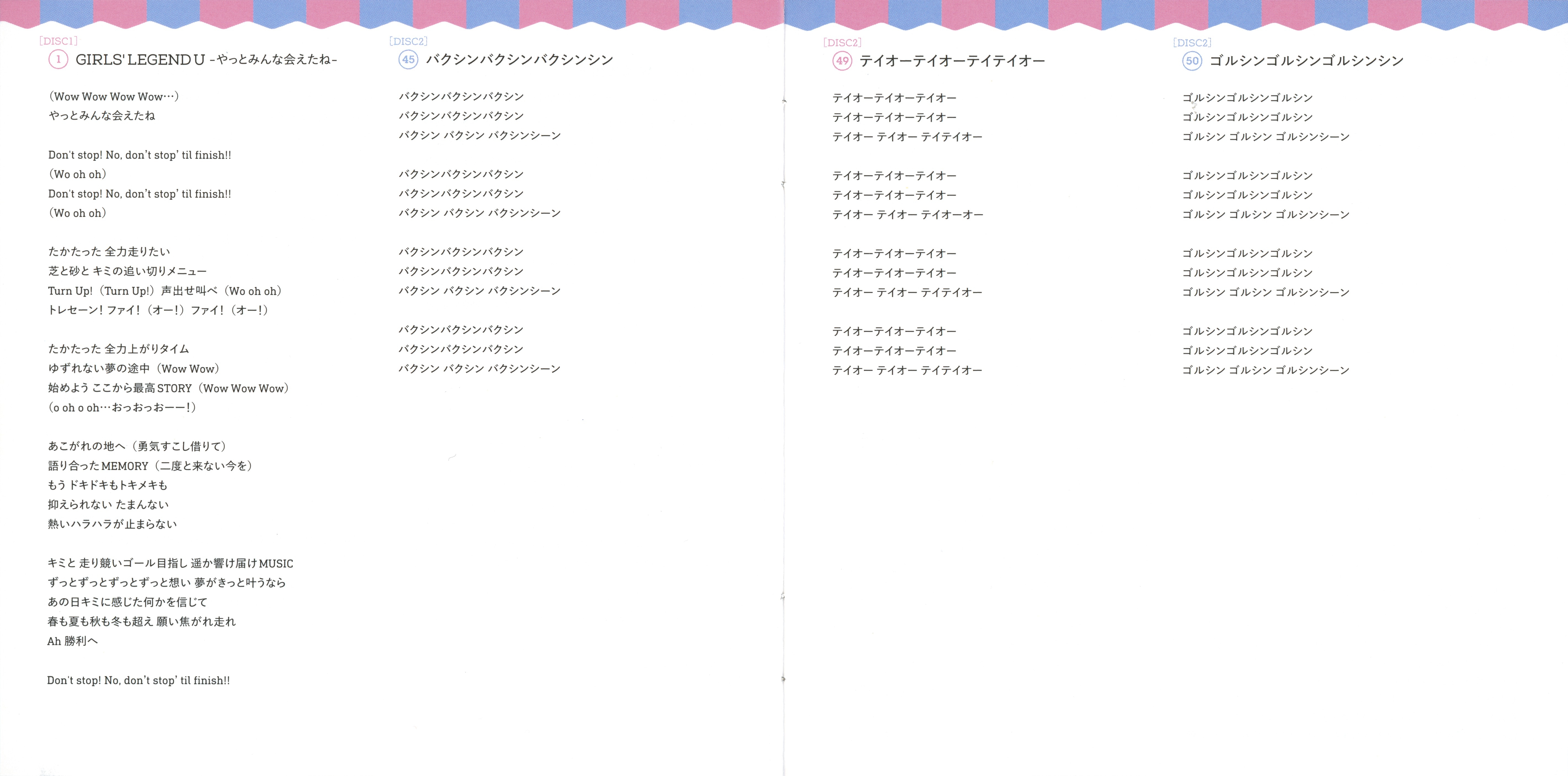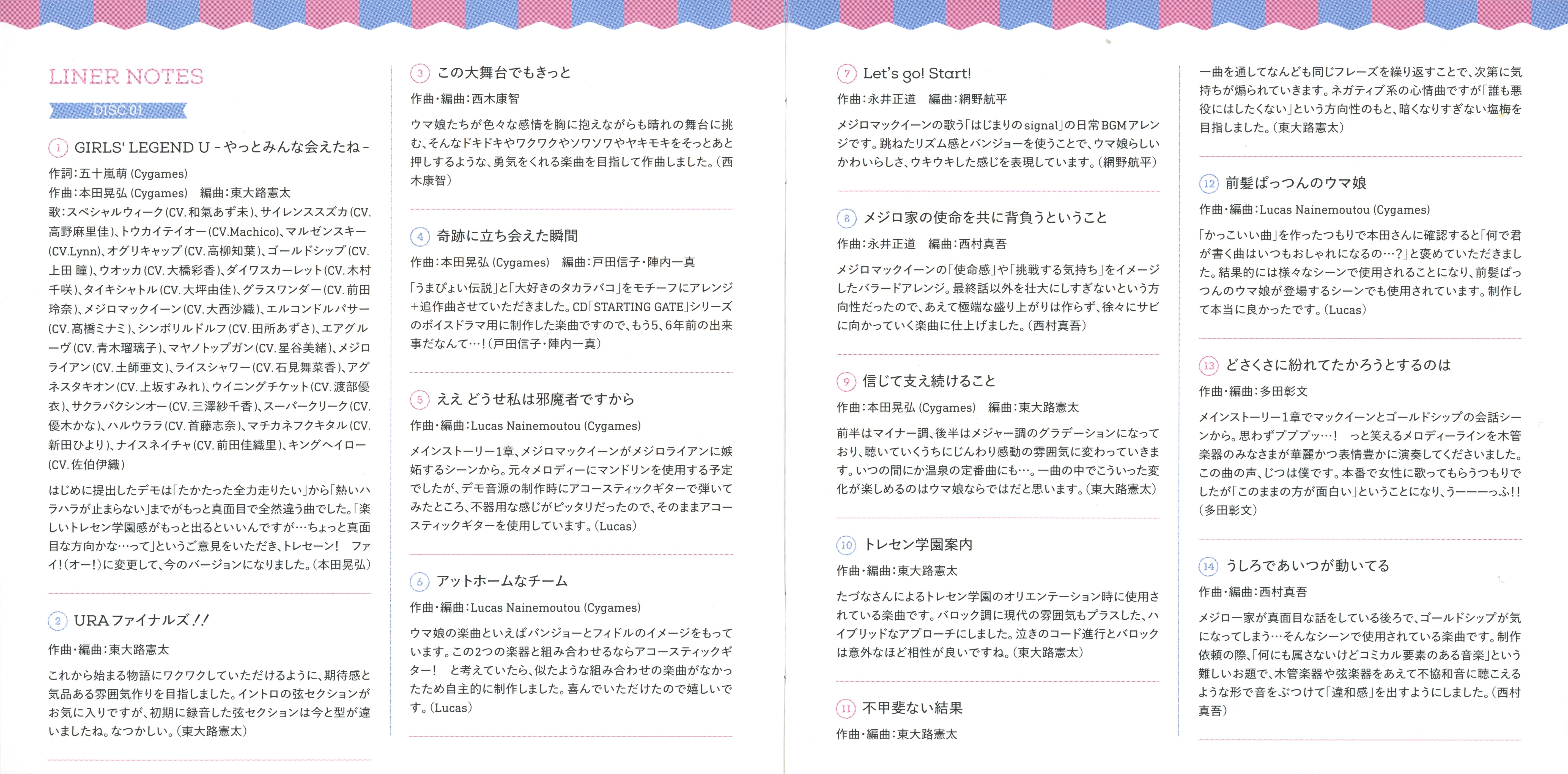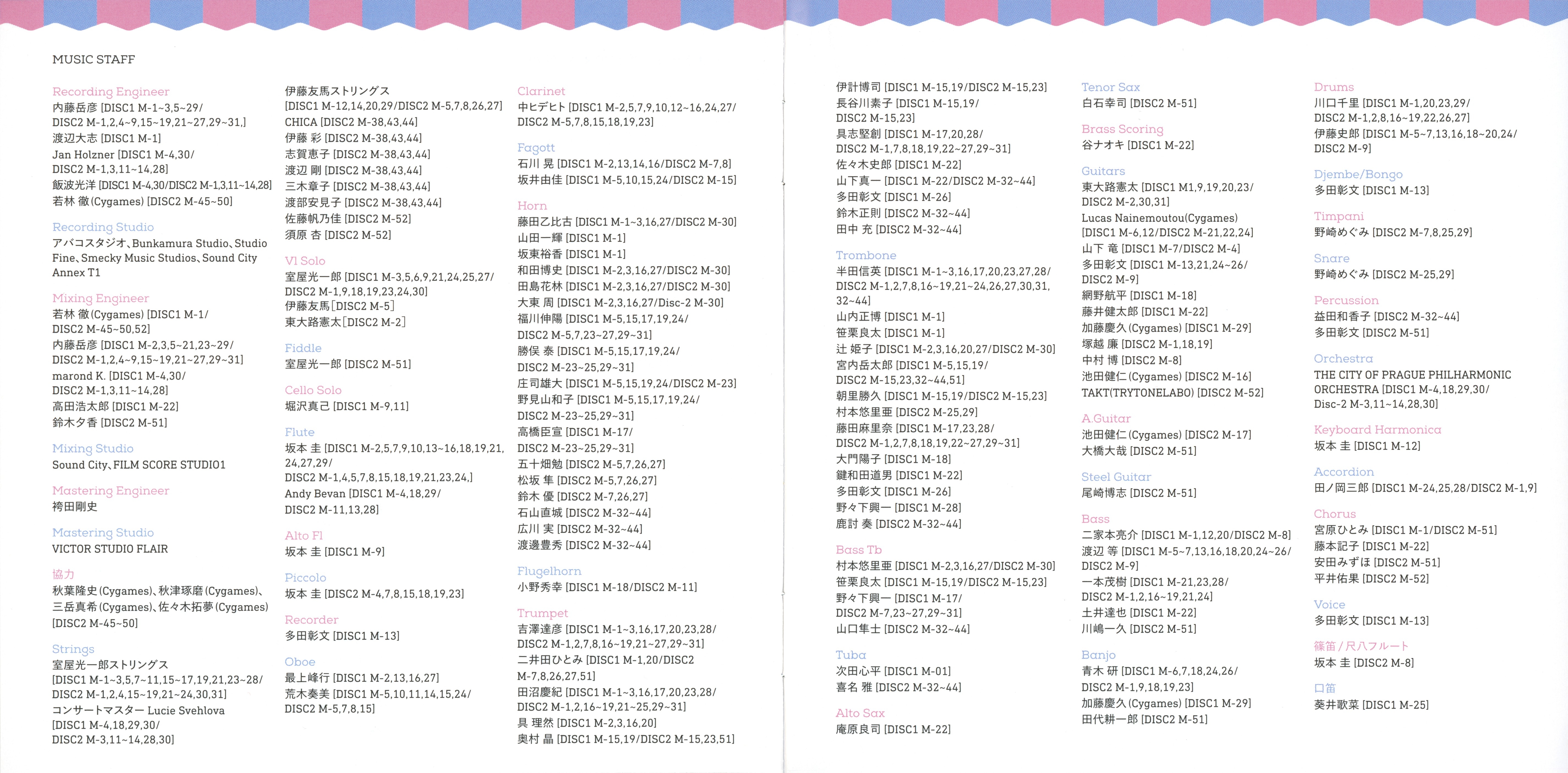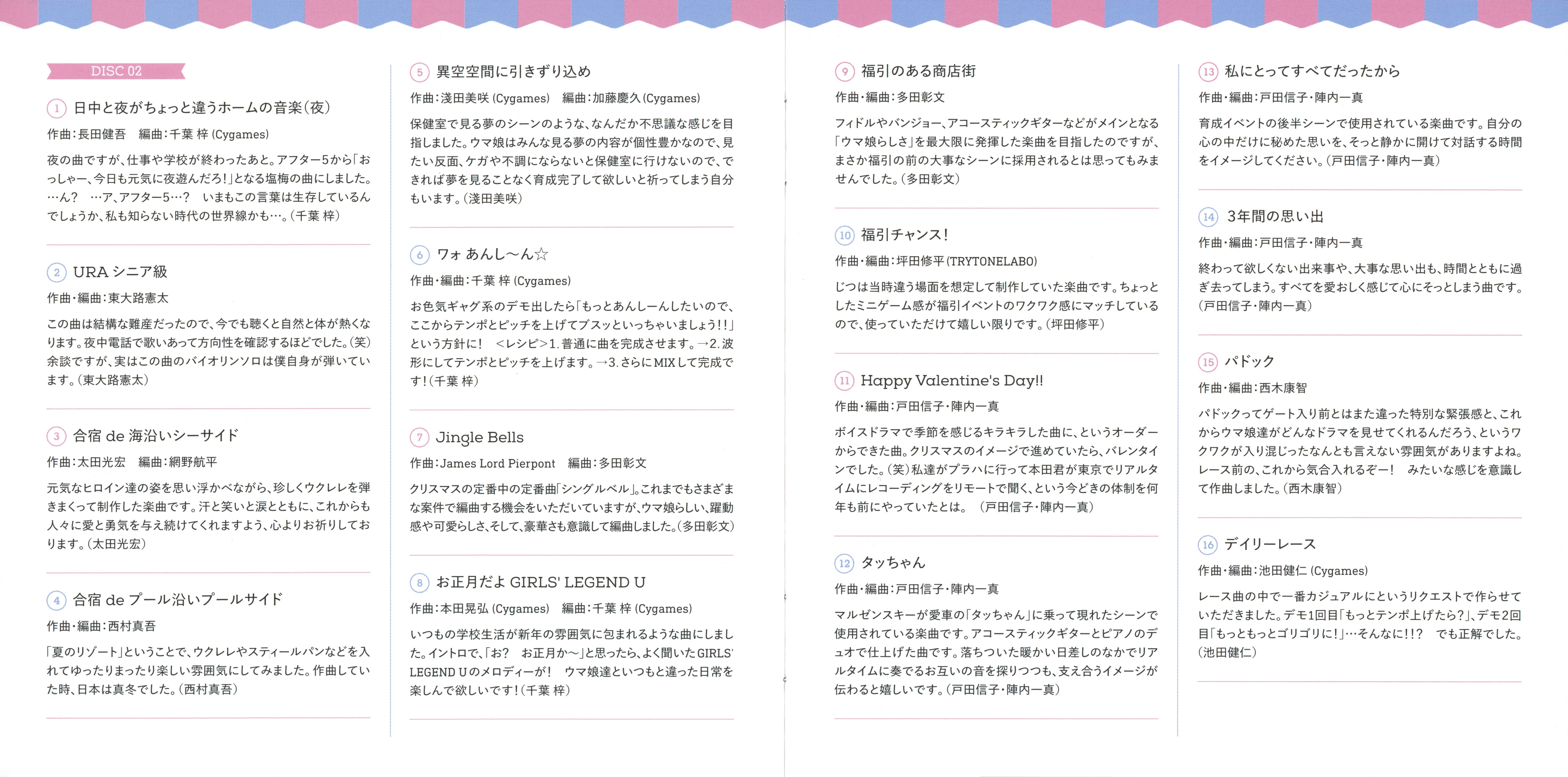 Takashi Akiba(Cygames), Takuma Akitsu (Cygames), Maki Mitsutake (Cygames), Takumu Sasaki (Cygames) [DISC2 M-45~50]