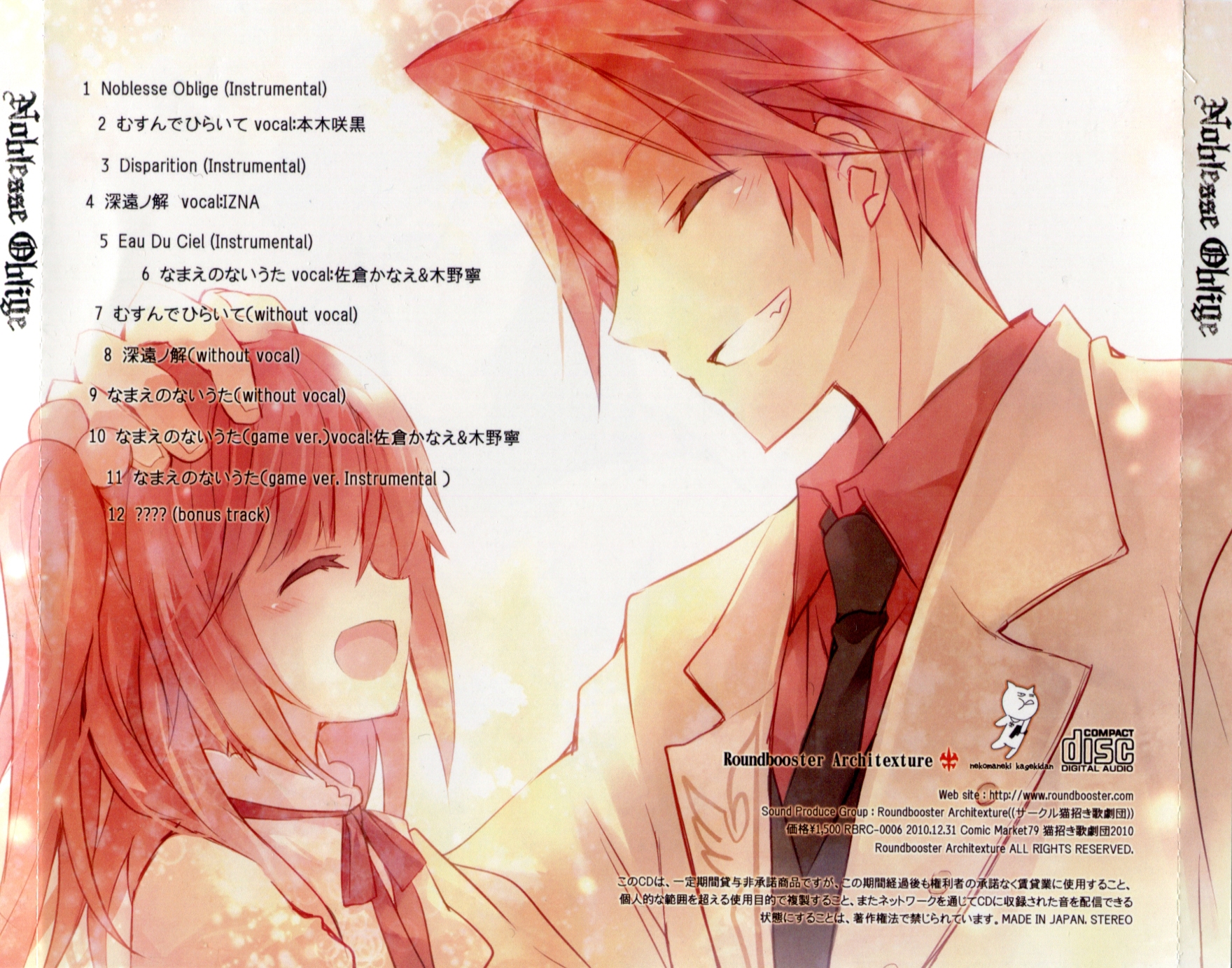 vocal: Zakuro Motoki (tr.2/tr.12), IZNA (tr.4), Kanae Sakura (tr.6/tr.10), Nei Kino (tr.6/tr.10)
