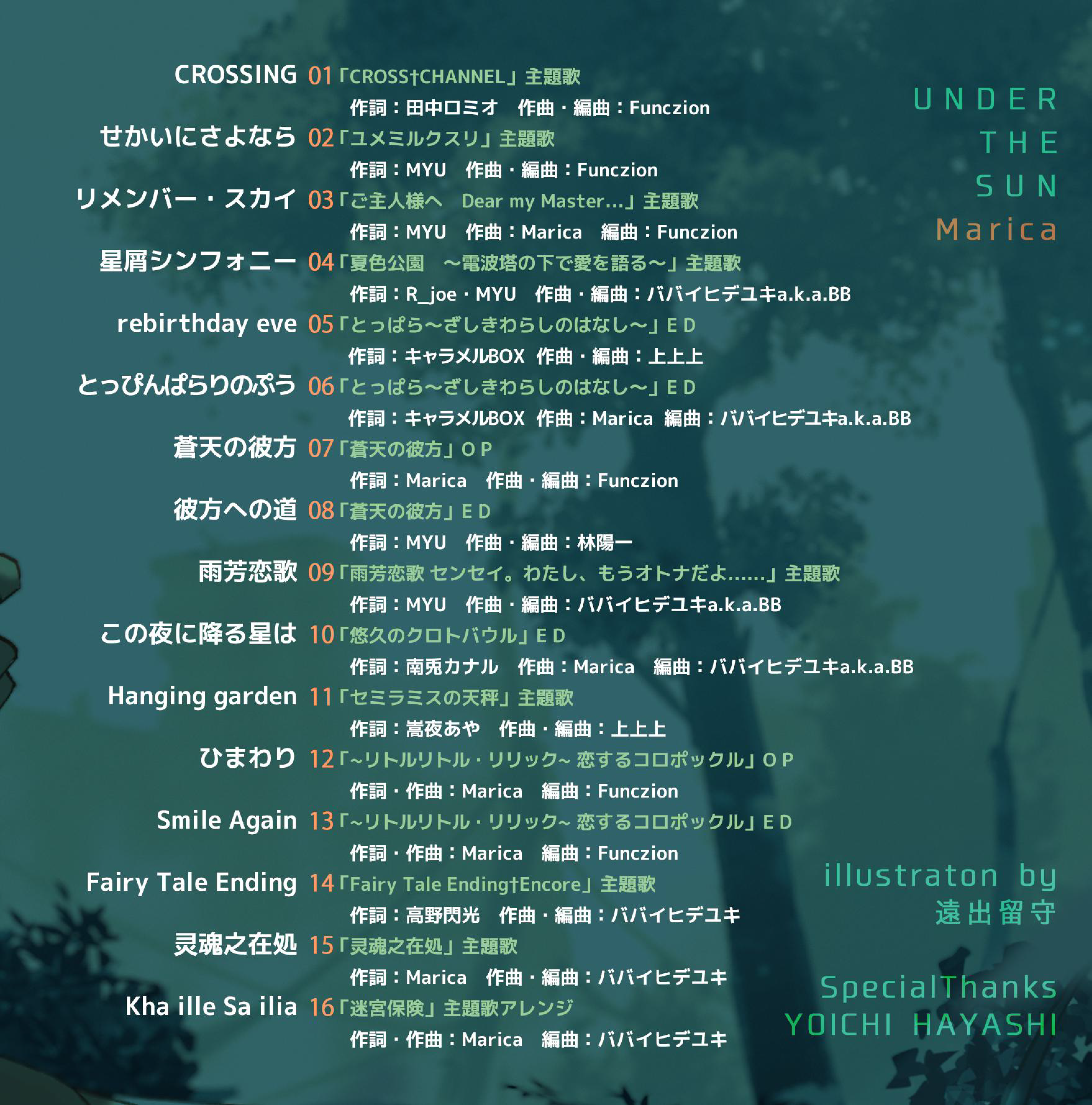 This is the download version of the album "Under the Sun" by Marica. This album contains 16 carefully selected songs from her works for PC games from 2001 to 2024.