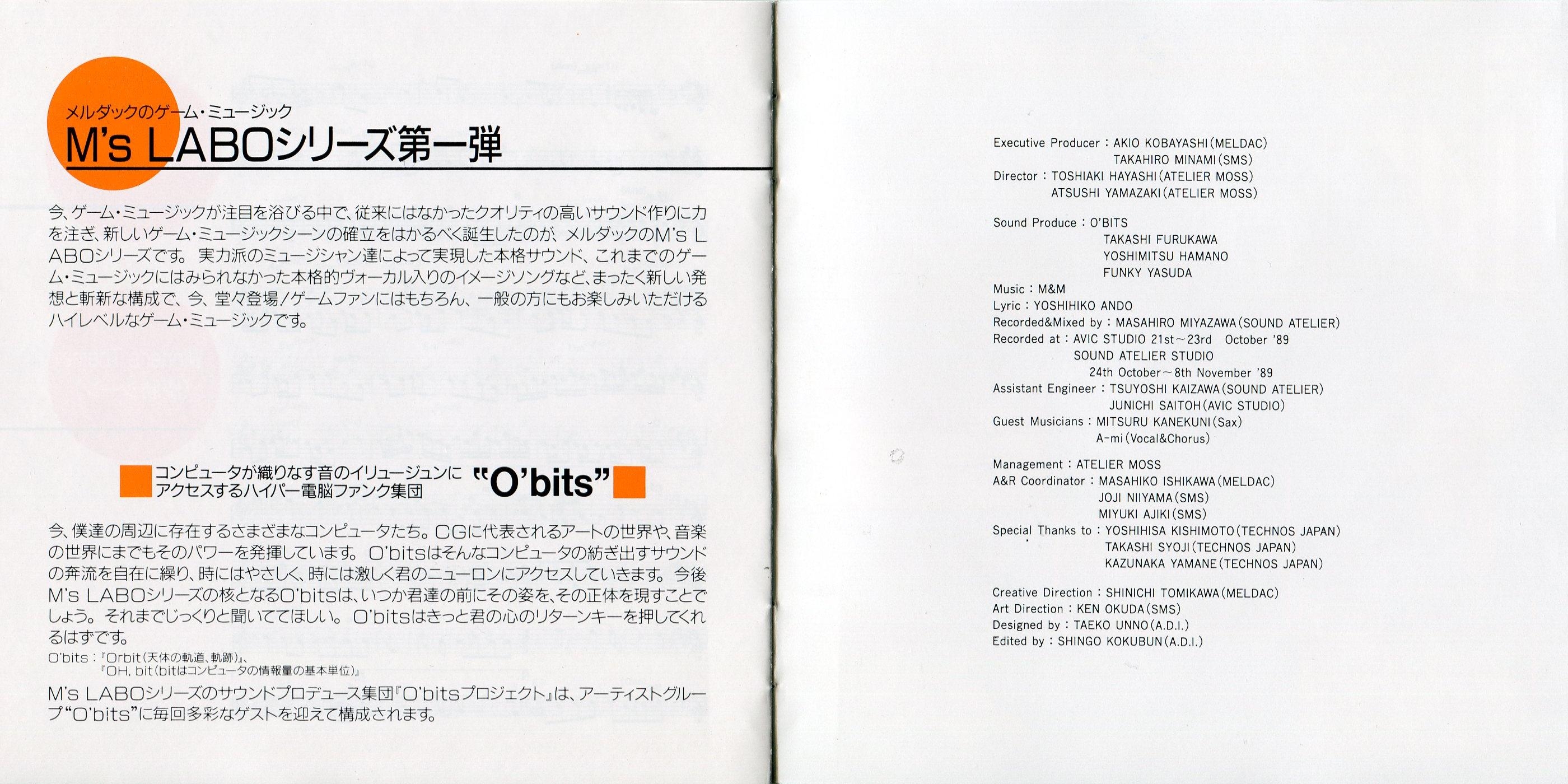 Special Thanks to : YOSHIHISA KISHIMOTO (TECHNOS JAPAN)