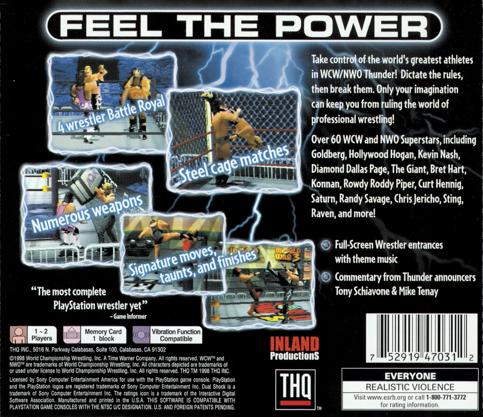 Take control of the world's greatest athletes in WCW/NWO Thunder! Dictate the rules, then break them. Only your imagination can keep you from ruling the world of professional wrestling!