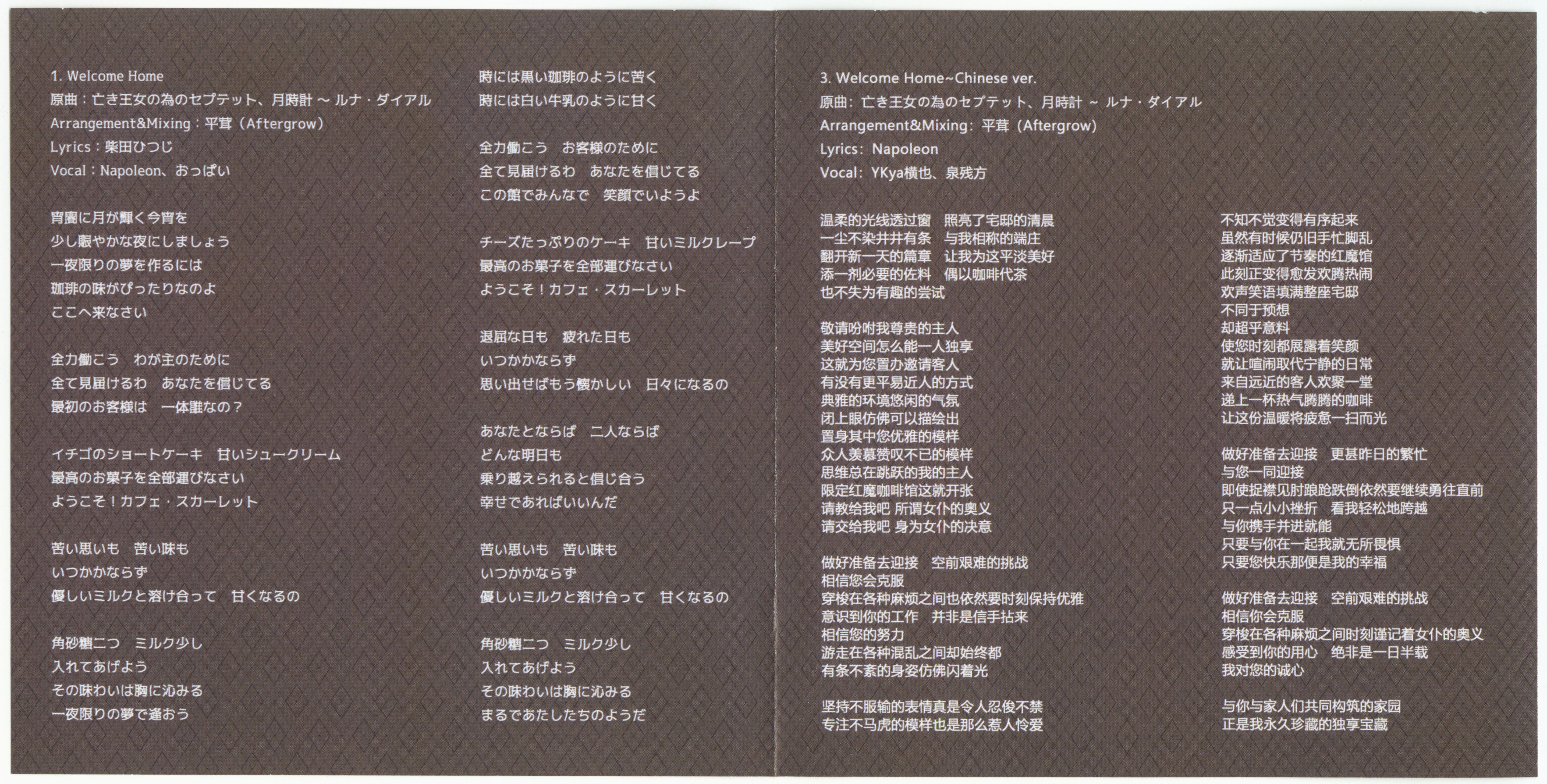 3. | Welcome Home~Chinese ver. | 4:42 | 9.02 MB | 30.12 MB | get_app | playlist_add |