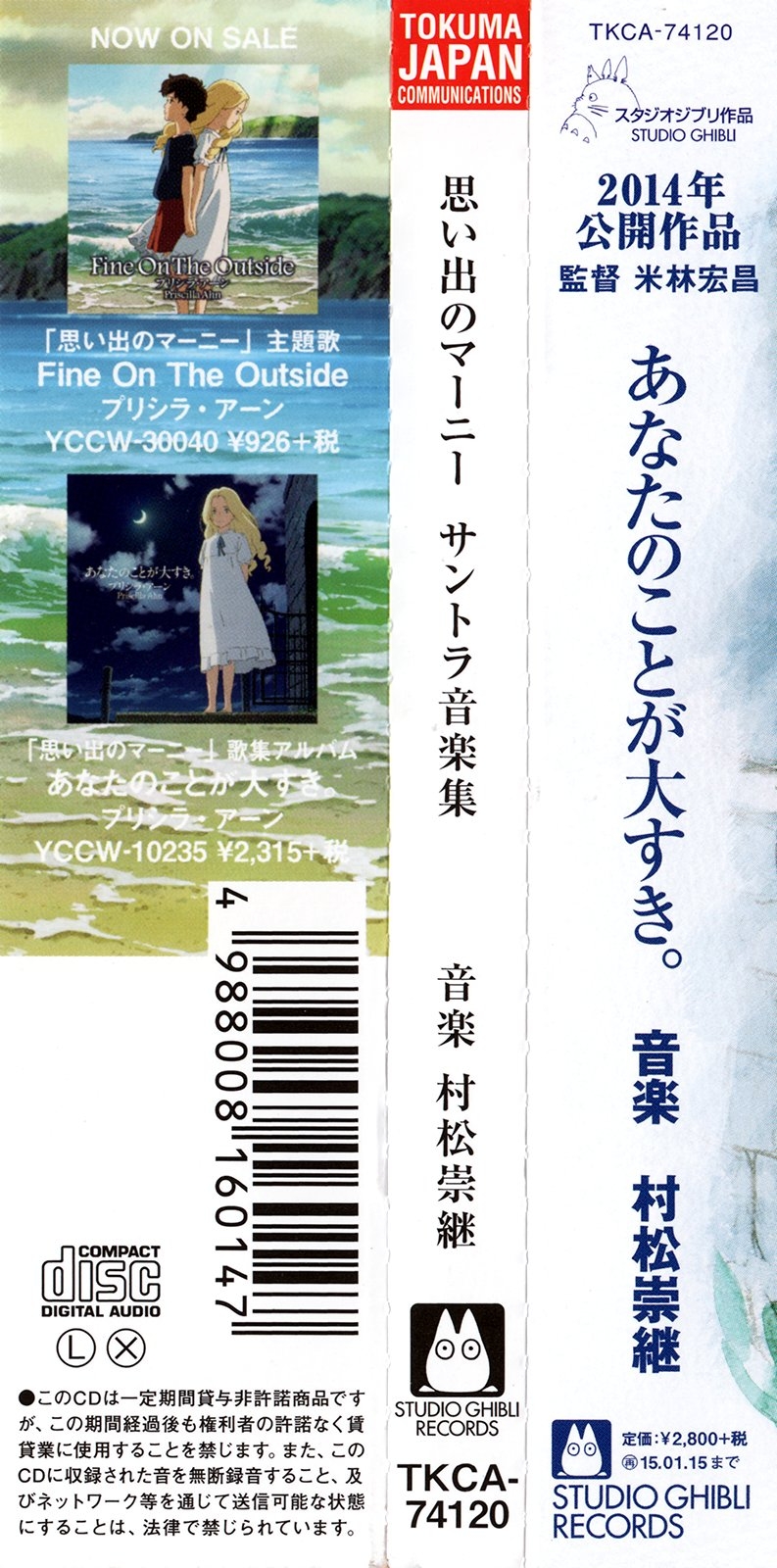 Published by: STUDIO GHIBLI RECORDS, TOKUMA JAPAN COMMUNICATIONS