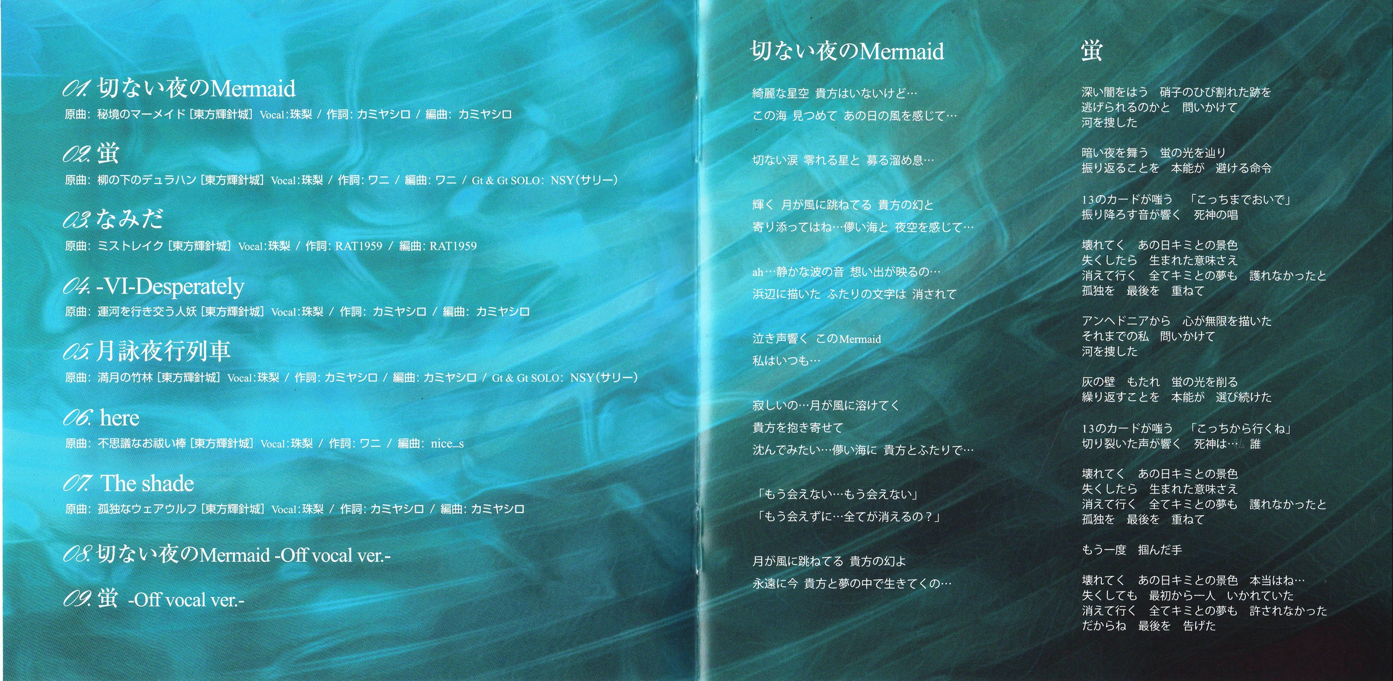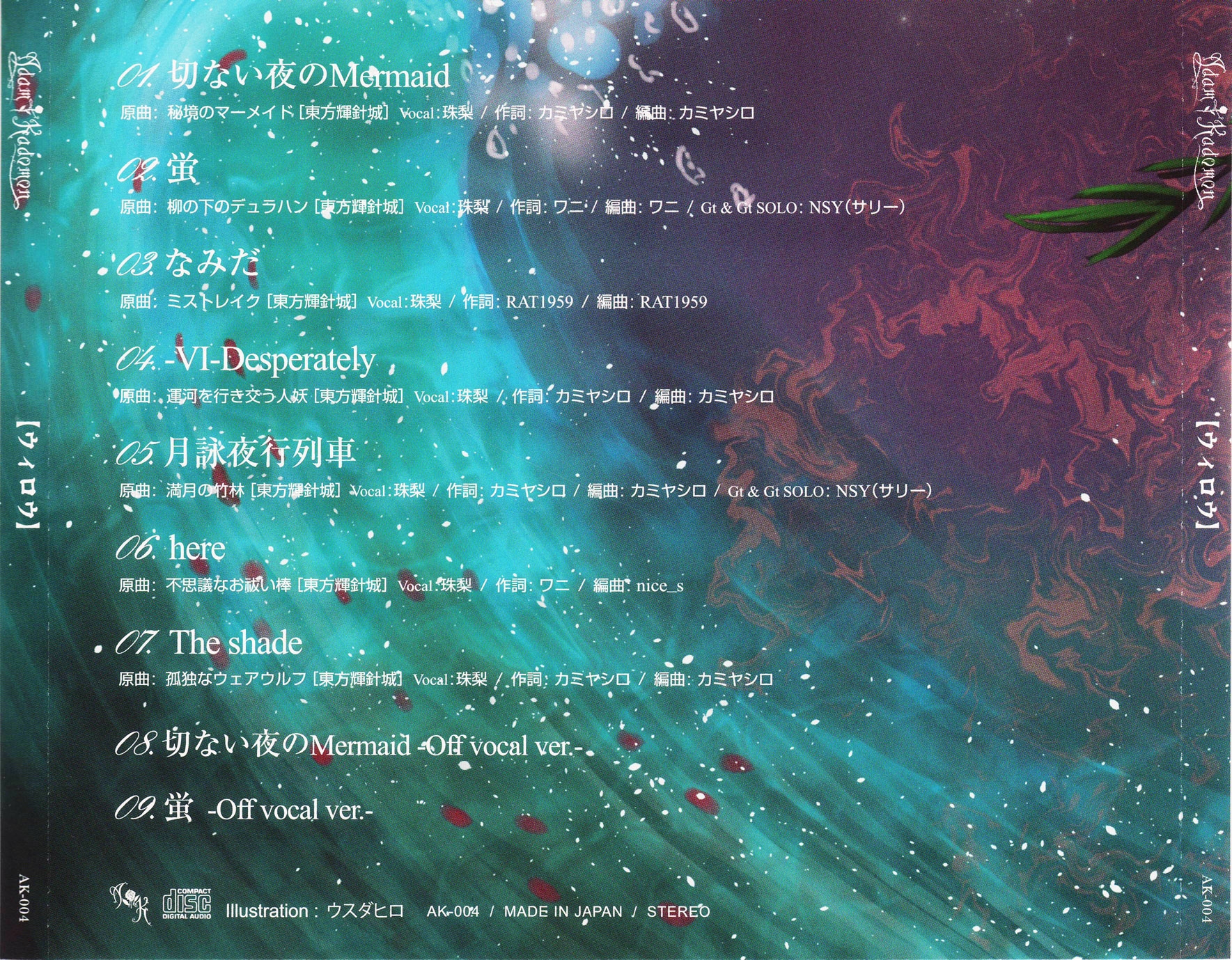 Guitars on Tr.1, 4, 5, 7, 8 by カミヤシロ, Tr.2, 9 by NSY [Sally].