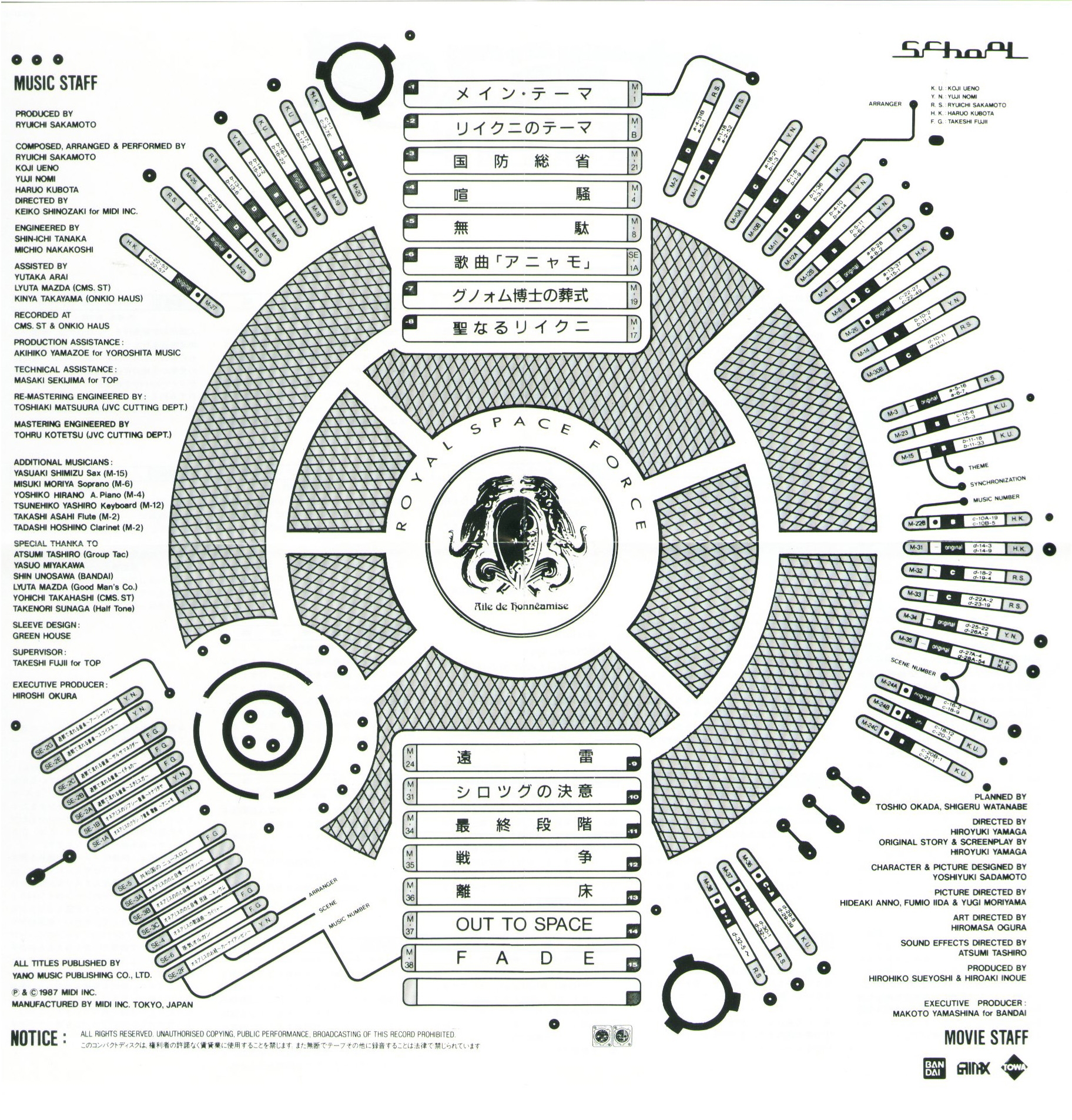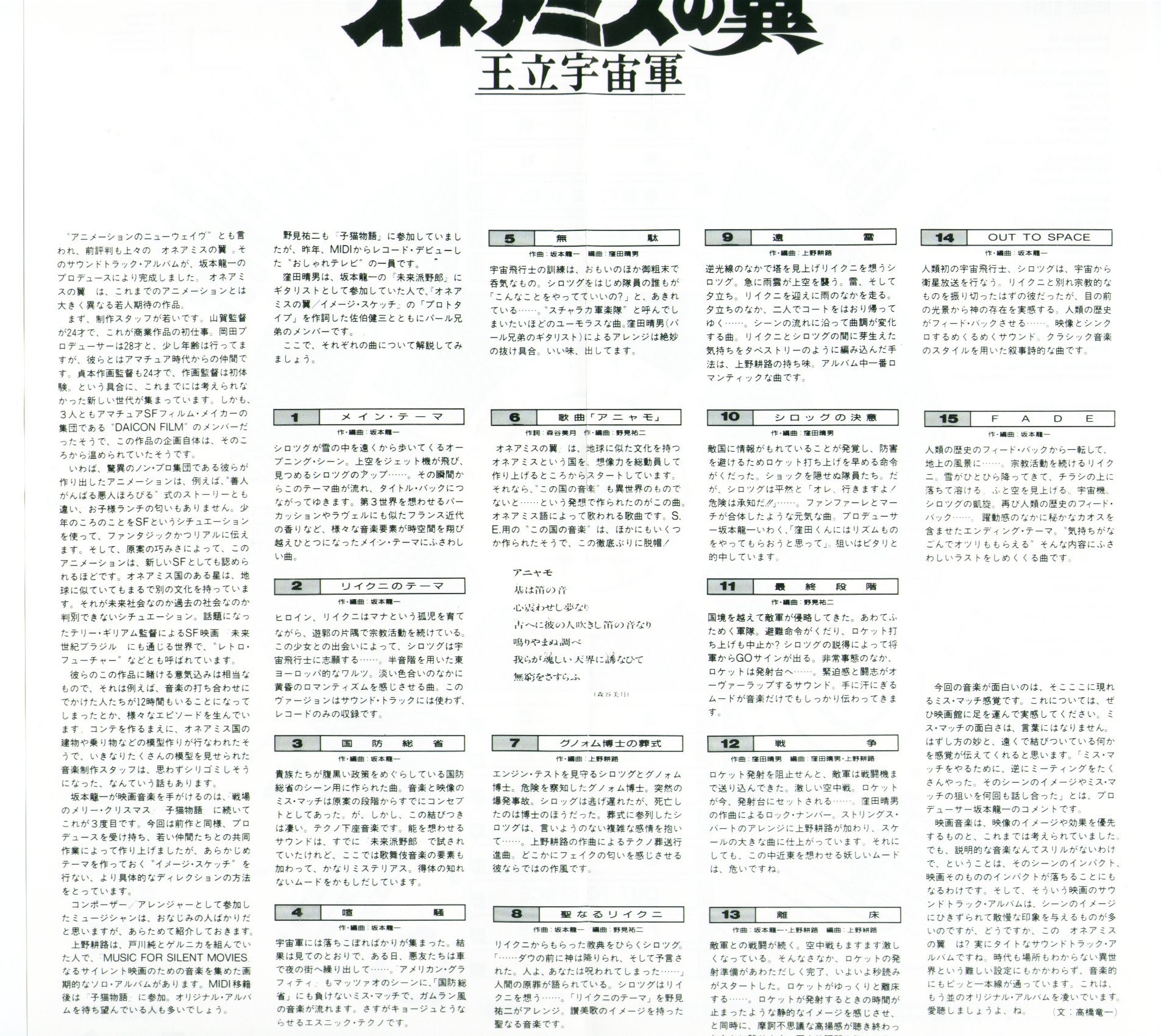 Ryuichi Sakamoto (01~04, 14, 15) / Yuji Nomi (06, 08, 11) / Koji Ueno (07, 09, 12, 13) / Haruo Kubota (05, 10, 12)