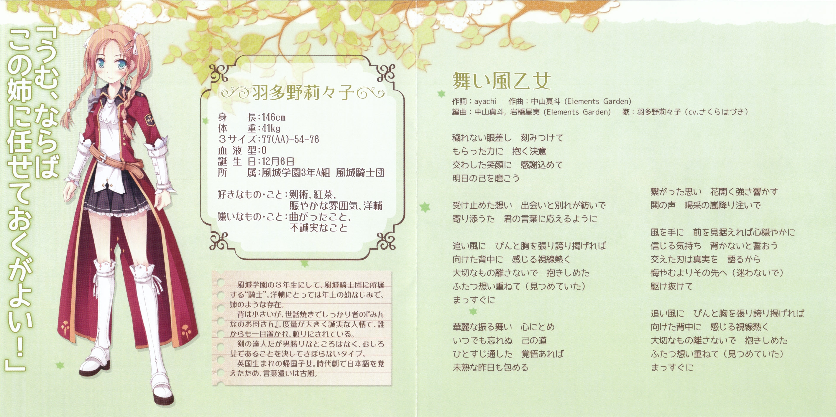 Vocals: Ririko Hatano (cv. Hazuki Sakura)
