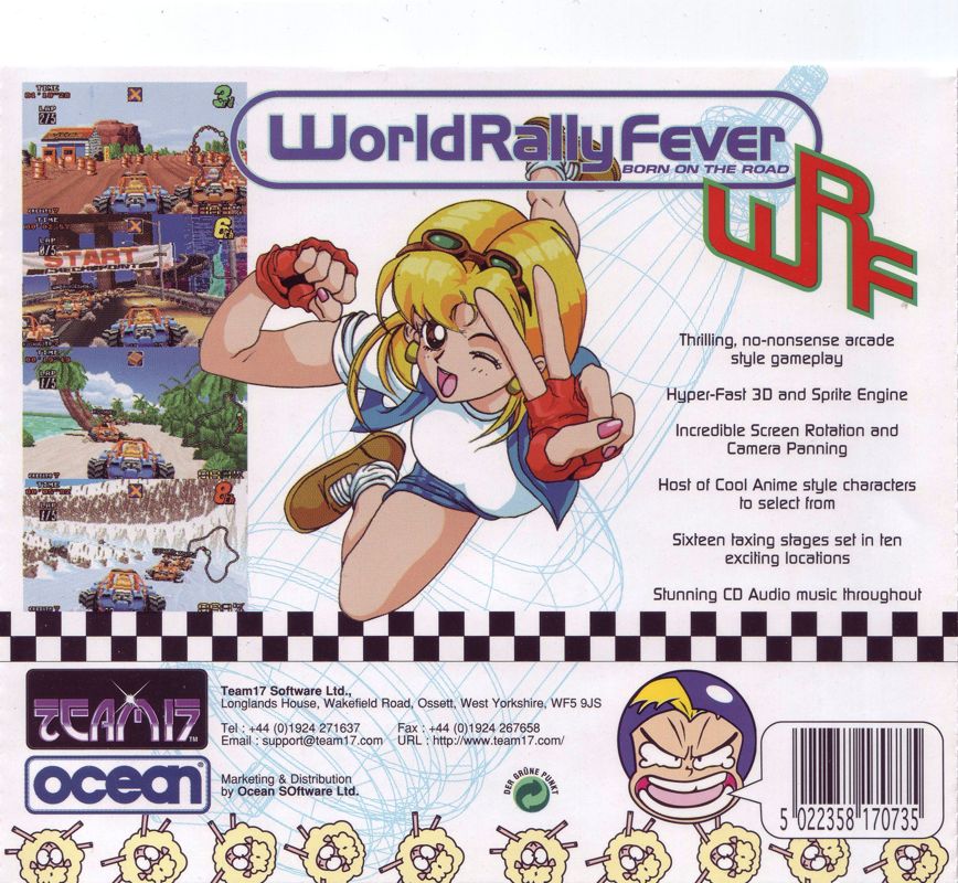 World Rally Fever is a racing game in which the player raced across the world through sixteen tracks, each divided into four tracks based on the championships cups (Rookie, Amateur, Pro-Am and Pro) the player choose which serves as difficulty level (Pro must be unlocked by completing all previous cups). The player will travel the globe, and race in Scotland, France, the United States, Japan and several other nations. Obstacles litter the track, such as fences, sheep and hay stacks which can be jump over. Each of the four championships cups (or difficulty) serve as how difficult the four tracks is in that particular cups, ranged from easy (dealing with less obstacles and trap hazards) to hard (encountering more hazards and hard-to-traverse roads).