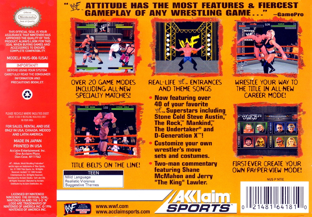 Now featuring over 40 of your favorite WWF Superstars including Stone Cold Steve Austin, The Rock, The Undertaker and D-Generation X! Customize your own wrestler's move sets and costumes. Over 20 game modes including all-new specialty matches. Wrestle your way to the title in all-new Career mode. Real-life WWF entrances and theme songs.