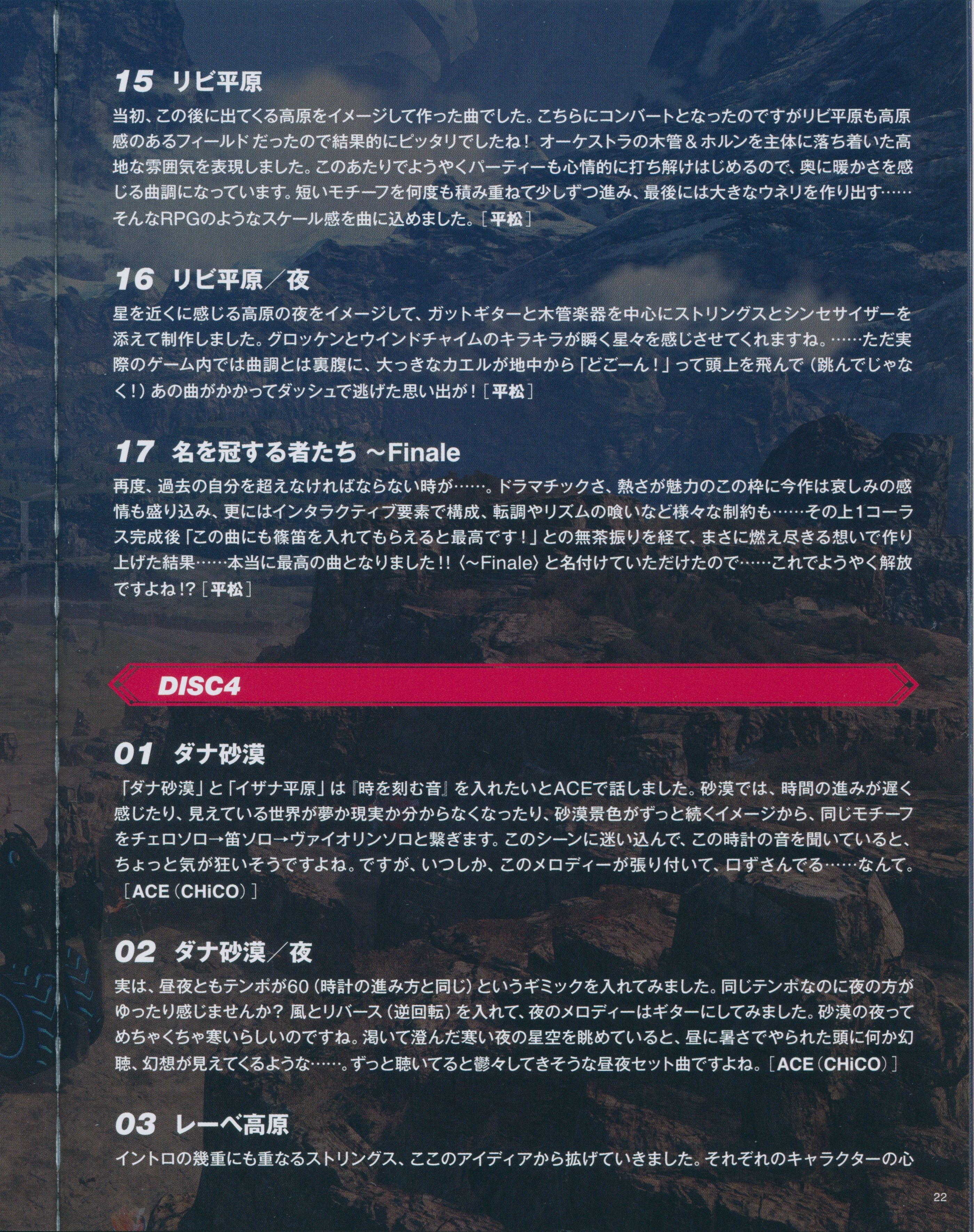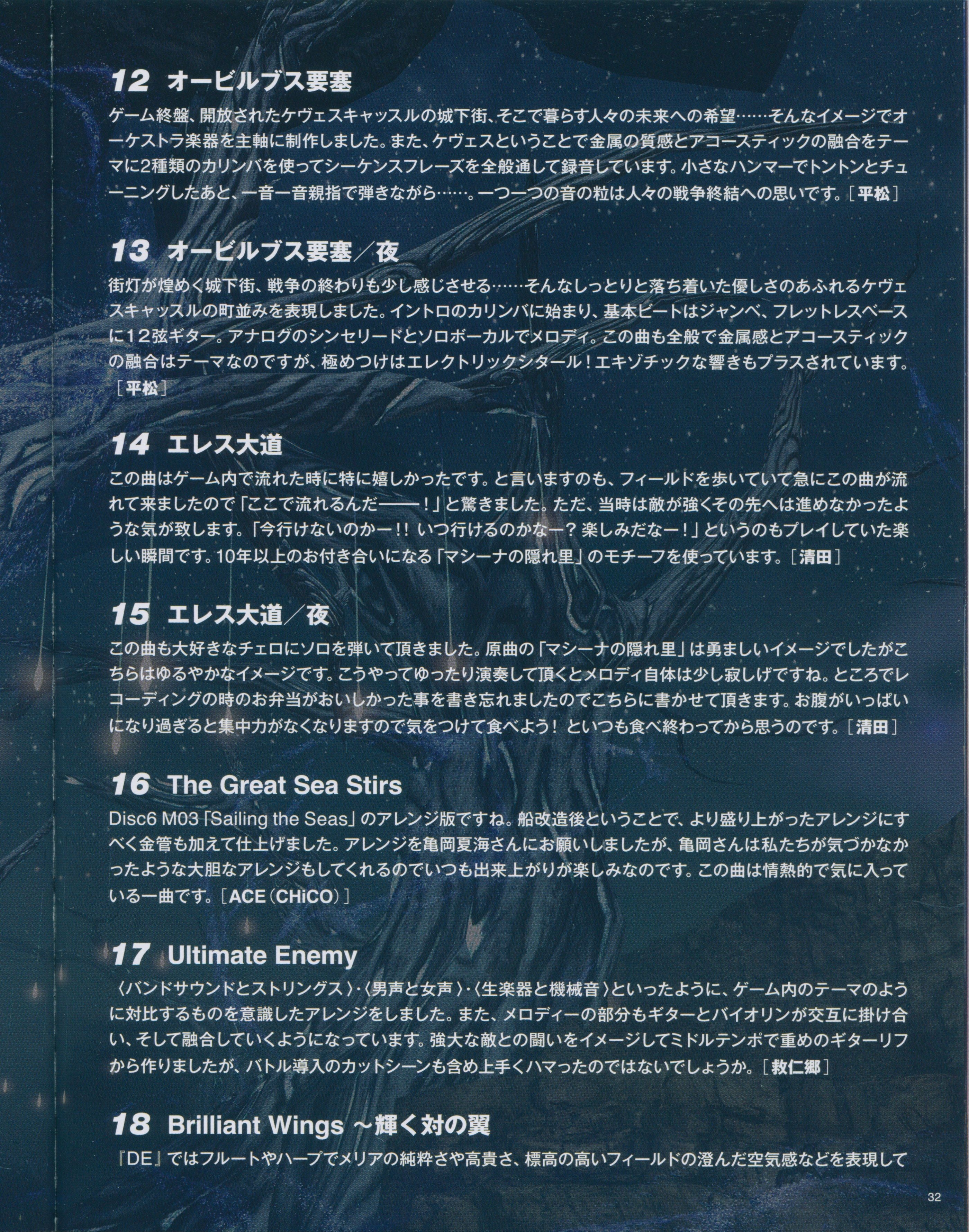 Music Audio Data Preparation: Yasunori Mitsuda [PROCYON STUDIO], TOMOri Kudo [ACE], Kenji Hiramatsu
