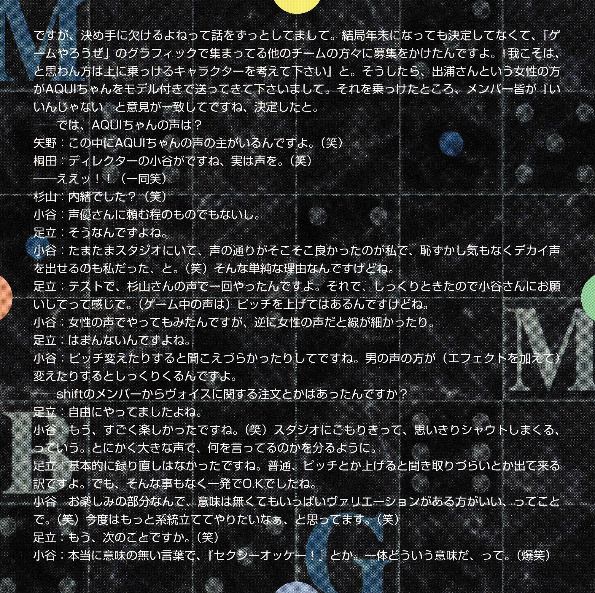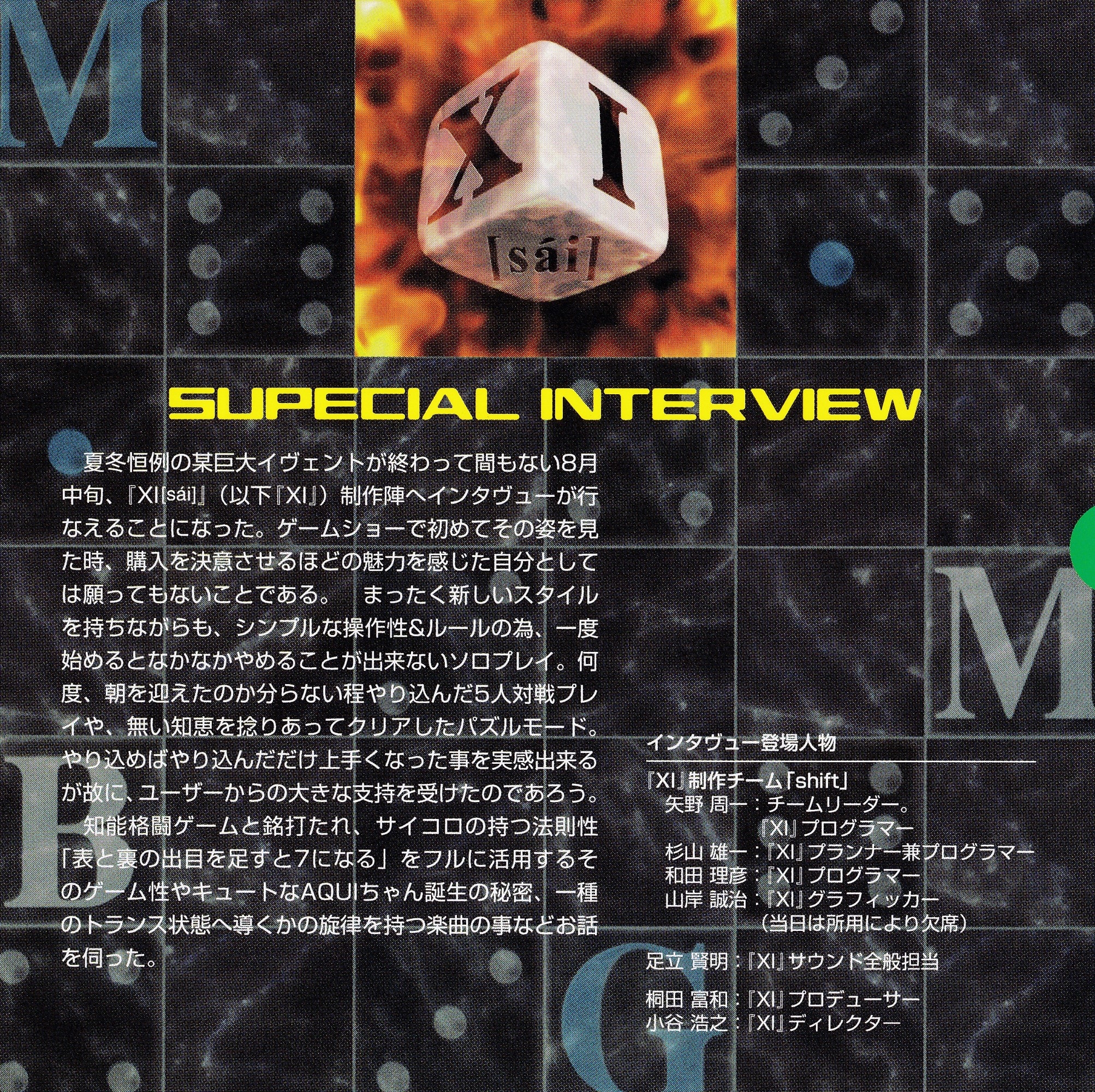 Special Thanks: Tomikazu Kirita [桐田富和] (SCE) / Hiroyuki Kotani [小谷浩之] (SCE) / Tatsuro Nakamura [中村達郎] (SCE)