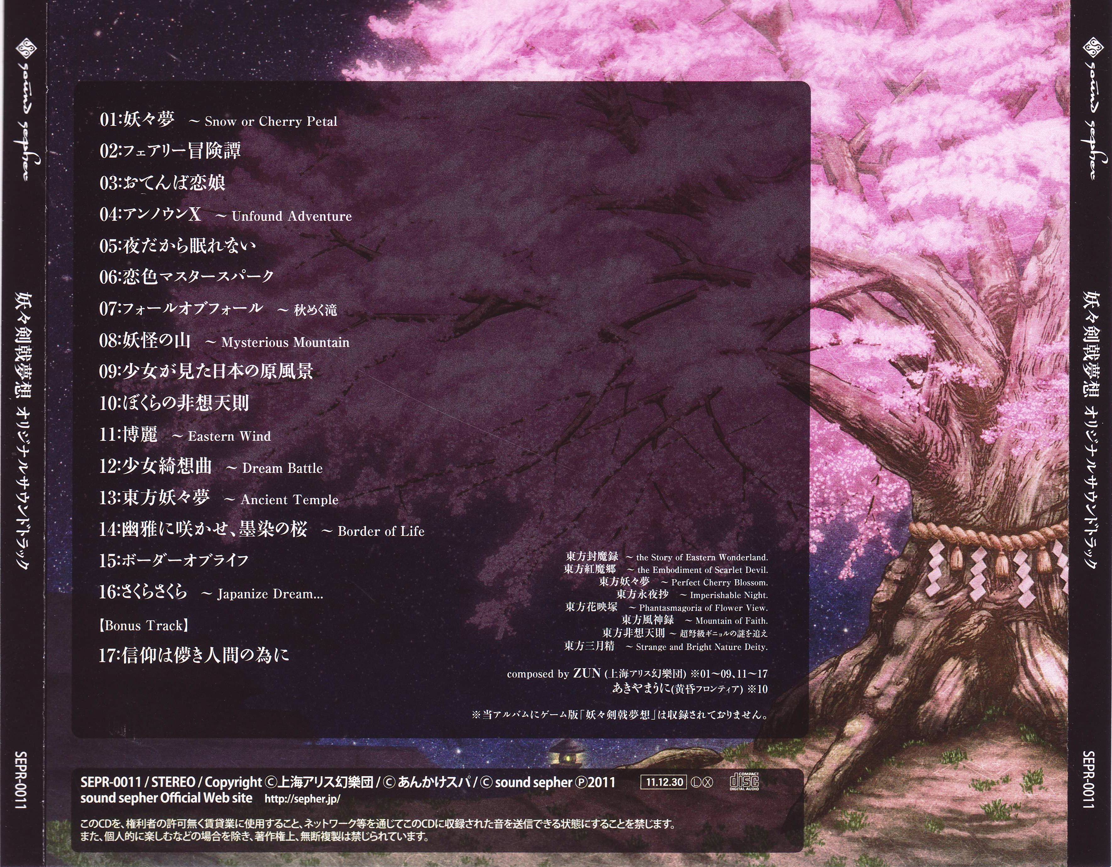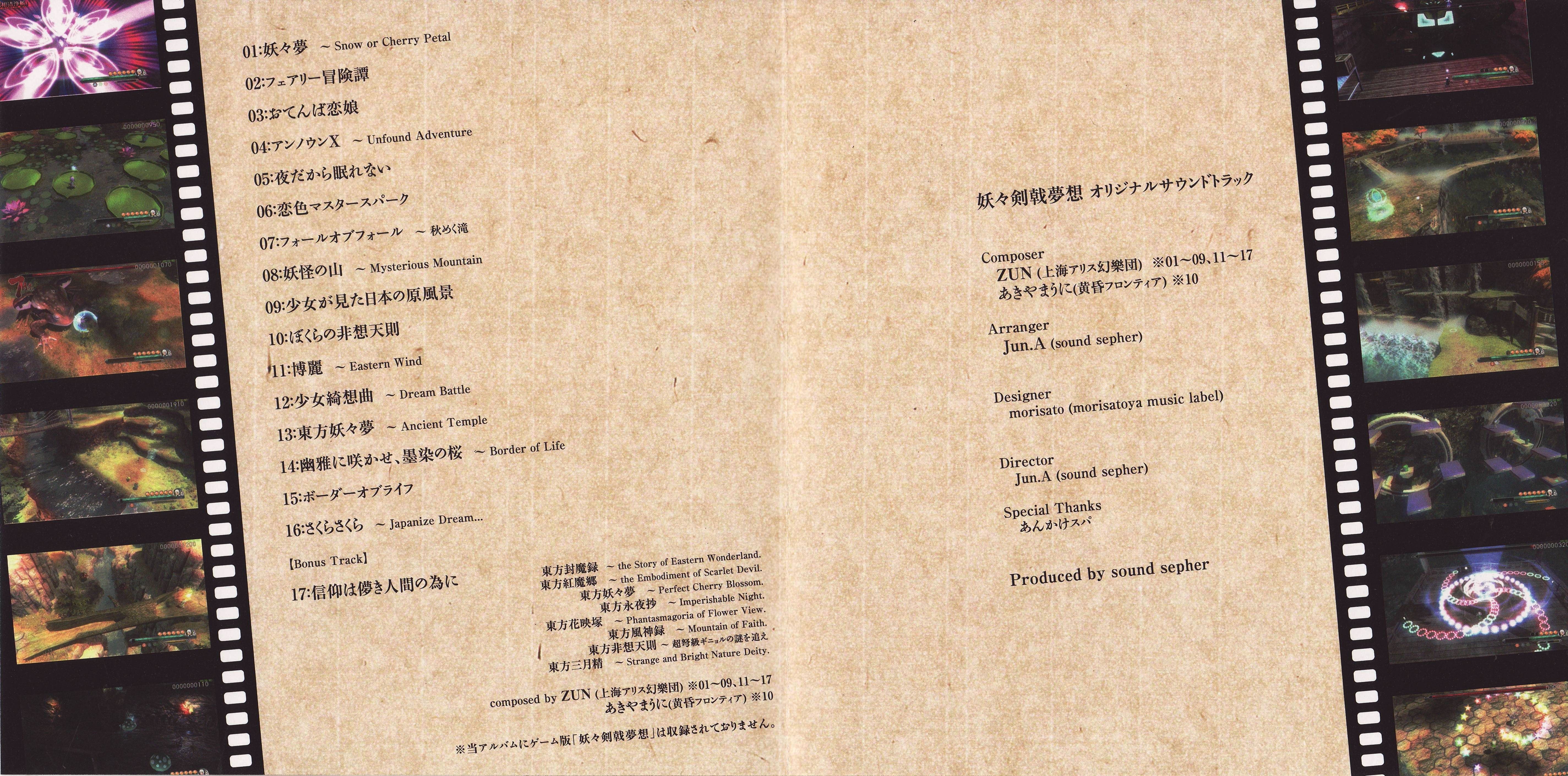 Composer: ZUN (Team Shanghai Alice) [01~09, 11~17], U2 Akiyama (Twilight Frontier) [10]