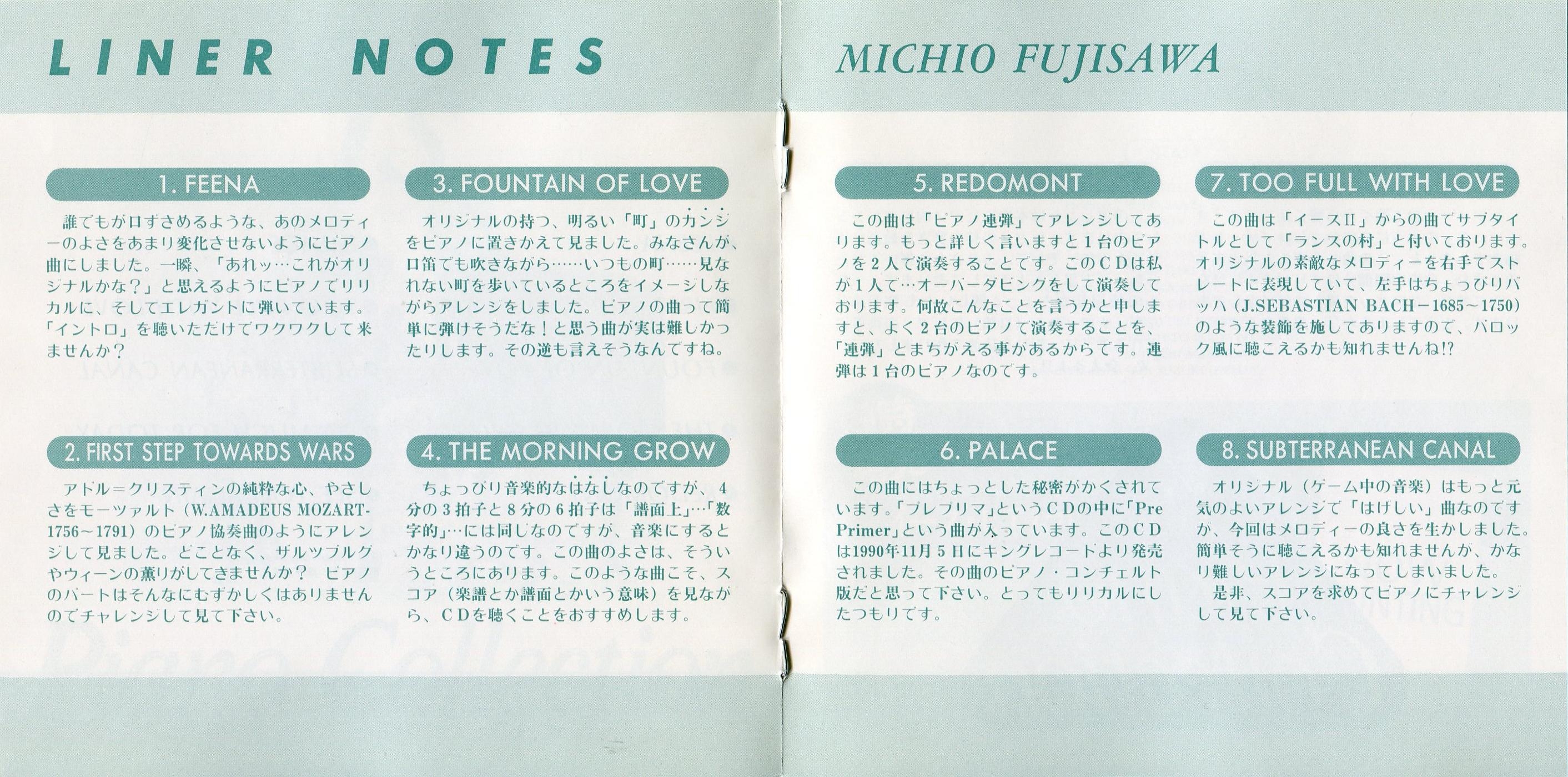 Liner Notes: Michio Fujisawa (pg. 4~6)