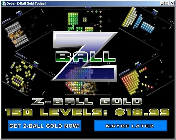 Z-Ball is has gameplay similar to Breakout or Arkanoid, but differs from most in that the paddle moves up and down on the right side of the screen. The game has sound, music, power-ups and a high score table. The shareware version comes with two game packs each containing ten levels while the full version Z-Ball Gold has one hundred and fifty levels.