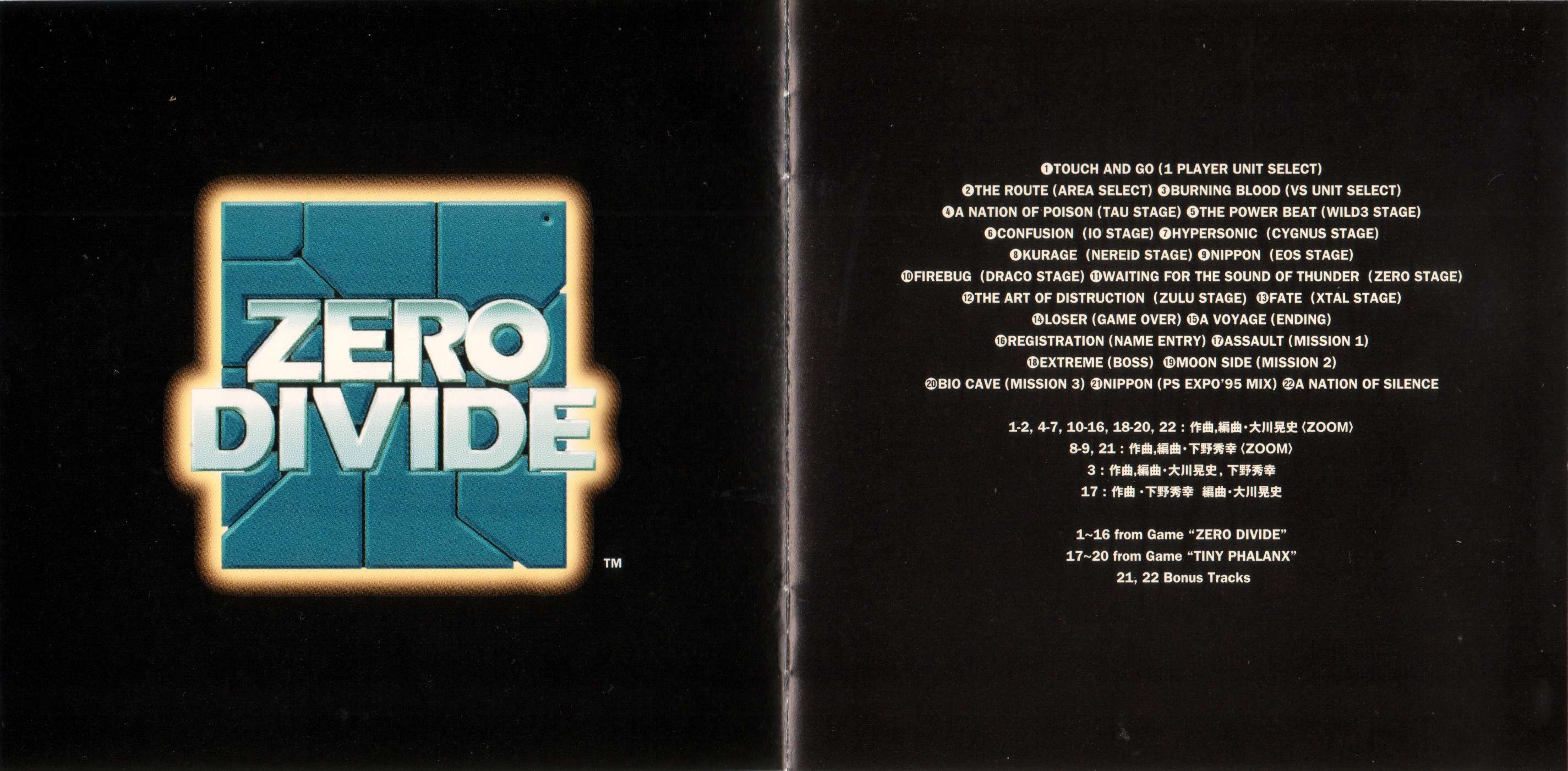 Composed & Arranged by Akihito Ohkawa (ZOOM): 1-2, 4-7, 10-16, 18-20, 22